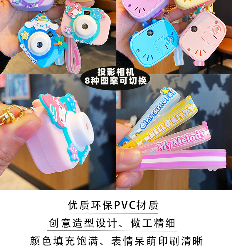 크리 에이 티브 프로젝션 카메라 키 체인 절묘하고 귀여운 Kuromi 계피 개 KT 고양이 학교 가방 펜던트 소녀 선물