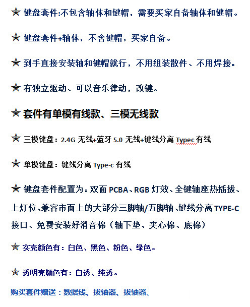 • 98 단일 모드 키트 녹색 샤프트 (키캡/노트 키보드 색상 제외)