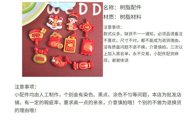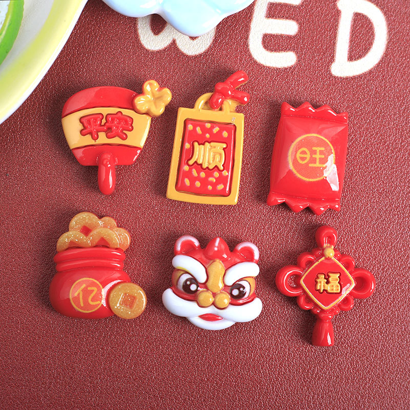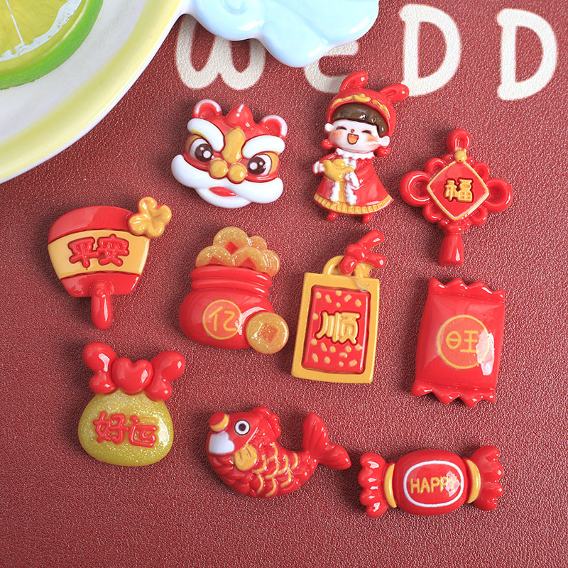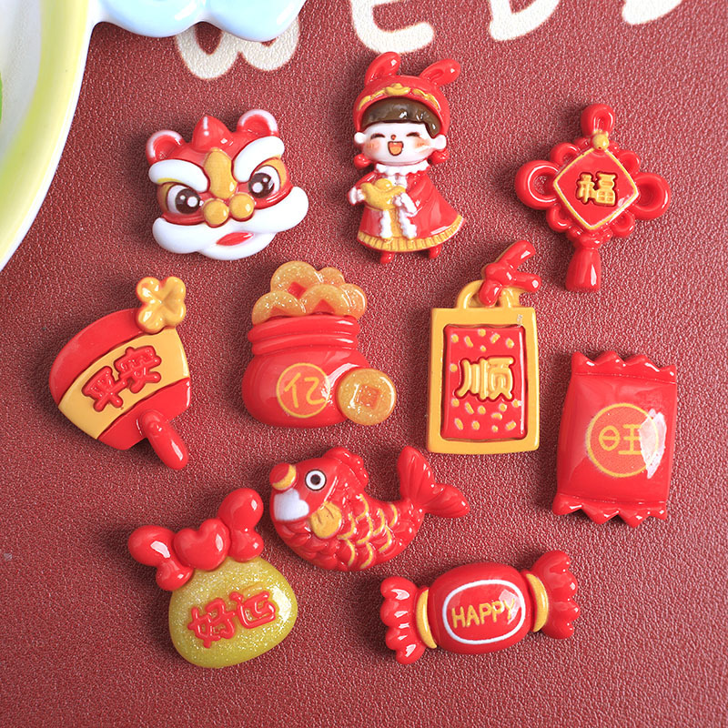 크림 접착제 DIY 수제 휴대 전화 쉘 새해 행운의 가방 작은 드래곤 머리핀 헤어 로프 빨간 장식