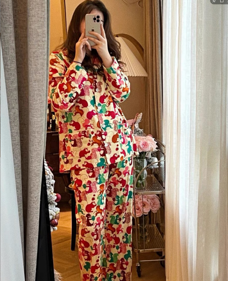竹纤维红丝带/小松鼠印花亲子装尺码参考:2698,2688