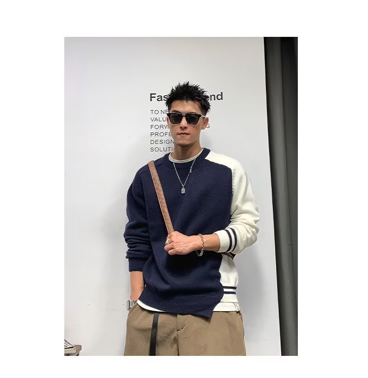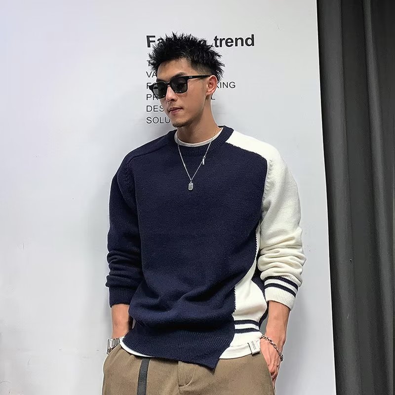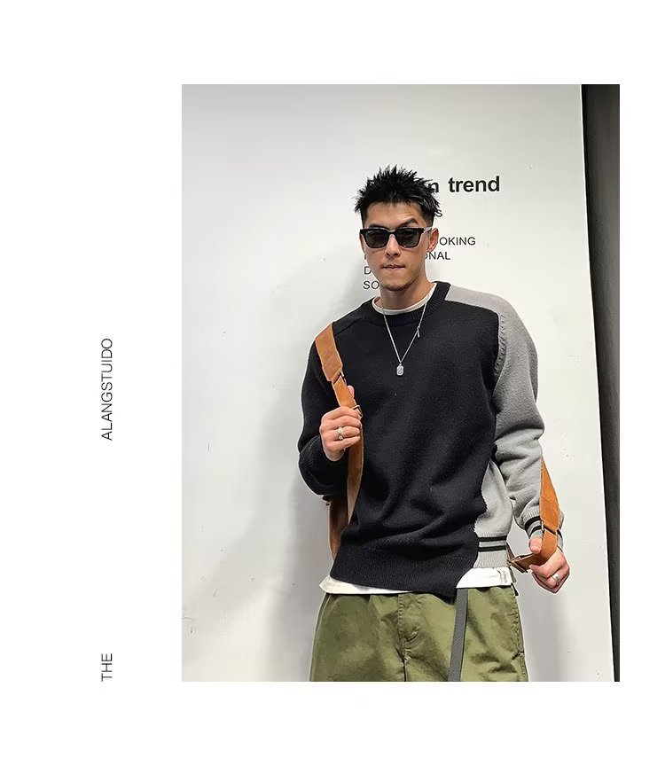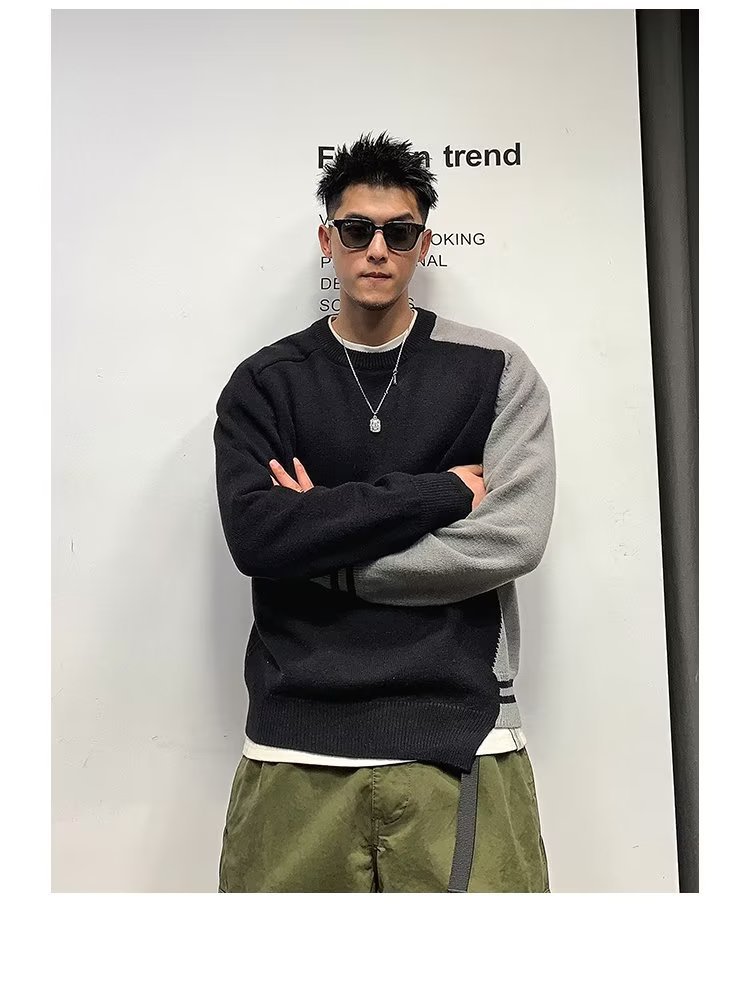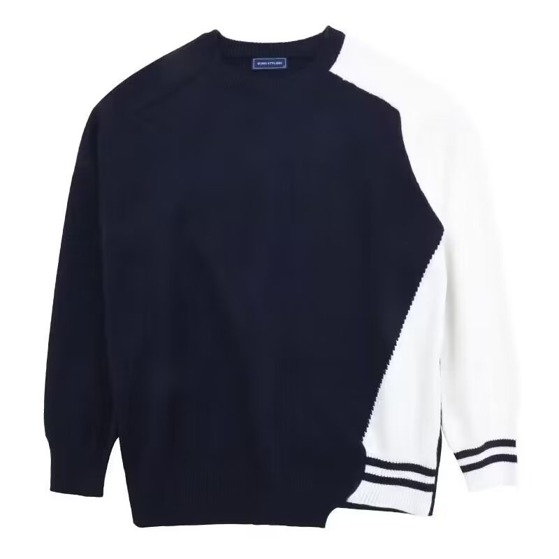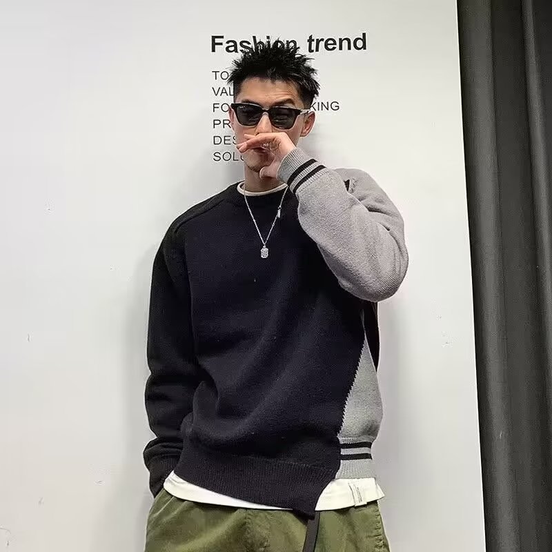 Raglan 컬러 매칭 내부 스웨터 남성 패션 브랜드 가을과 겨울 고급 스티칭 불규칙한 바닥 셔츠 탑