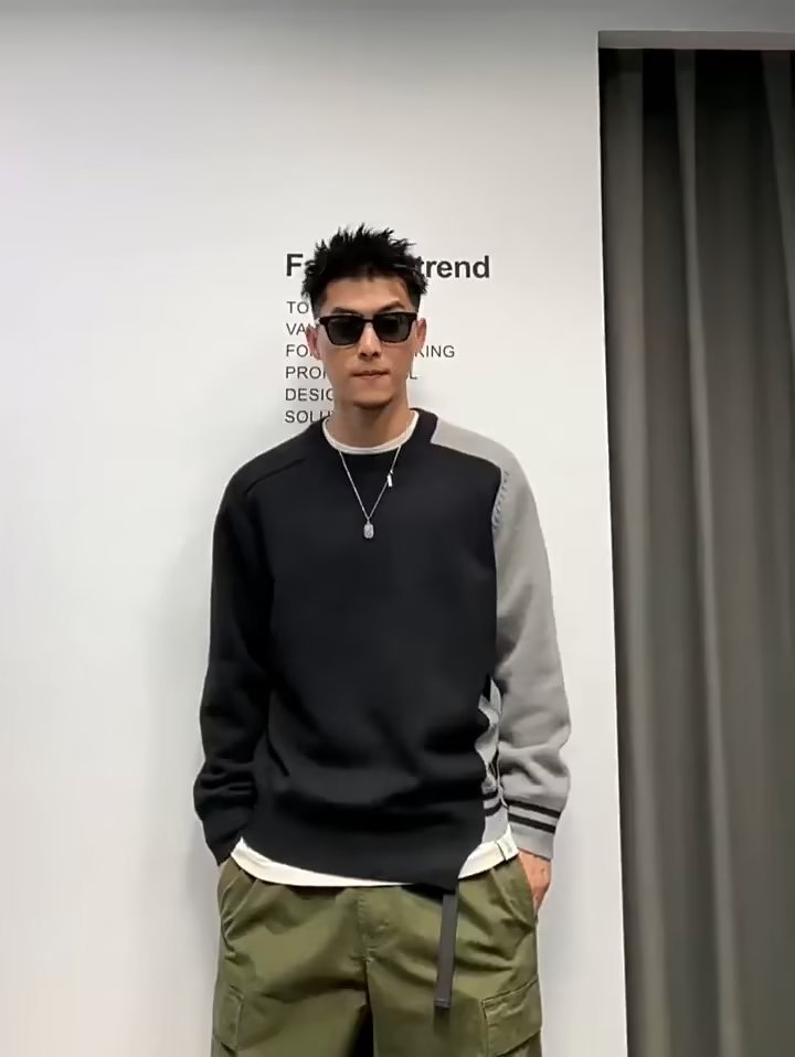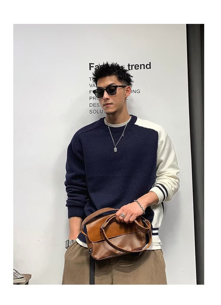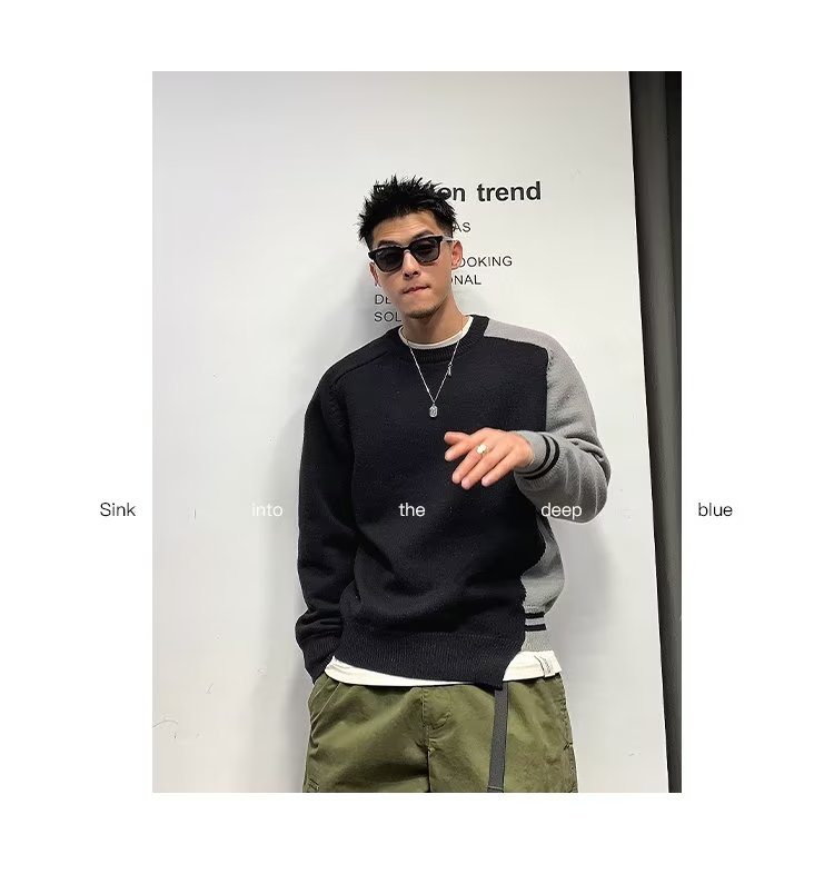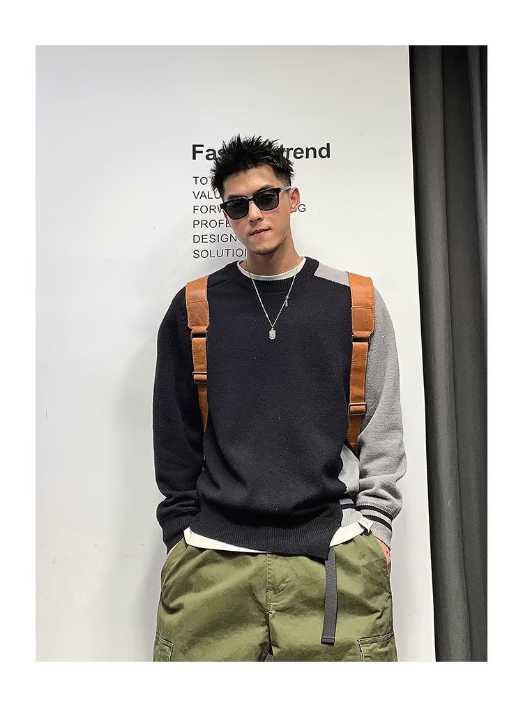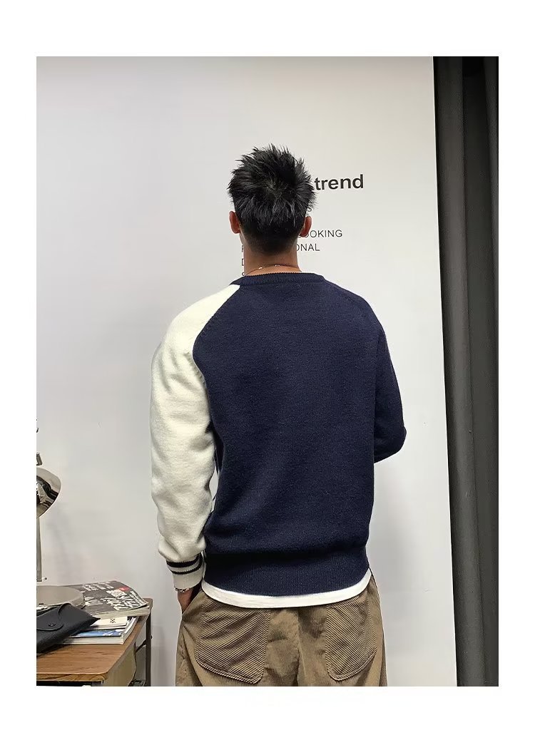 Raglan 컬러 매칭 내부 스웨터 남성 패션 브랜드 가을과 겨울 고급 스티칭 불규칙한 바닥 셔츠 탑