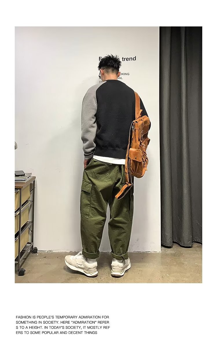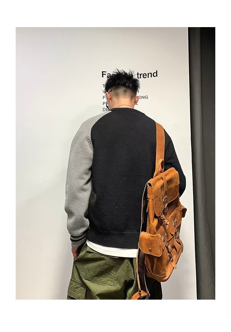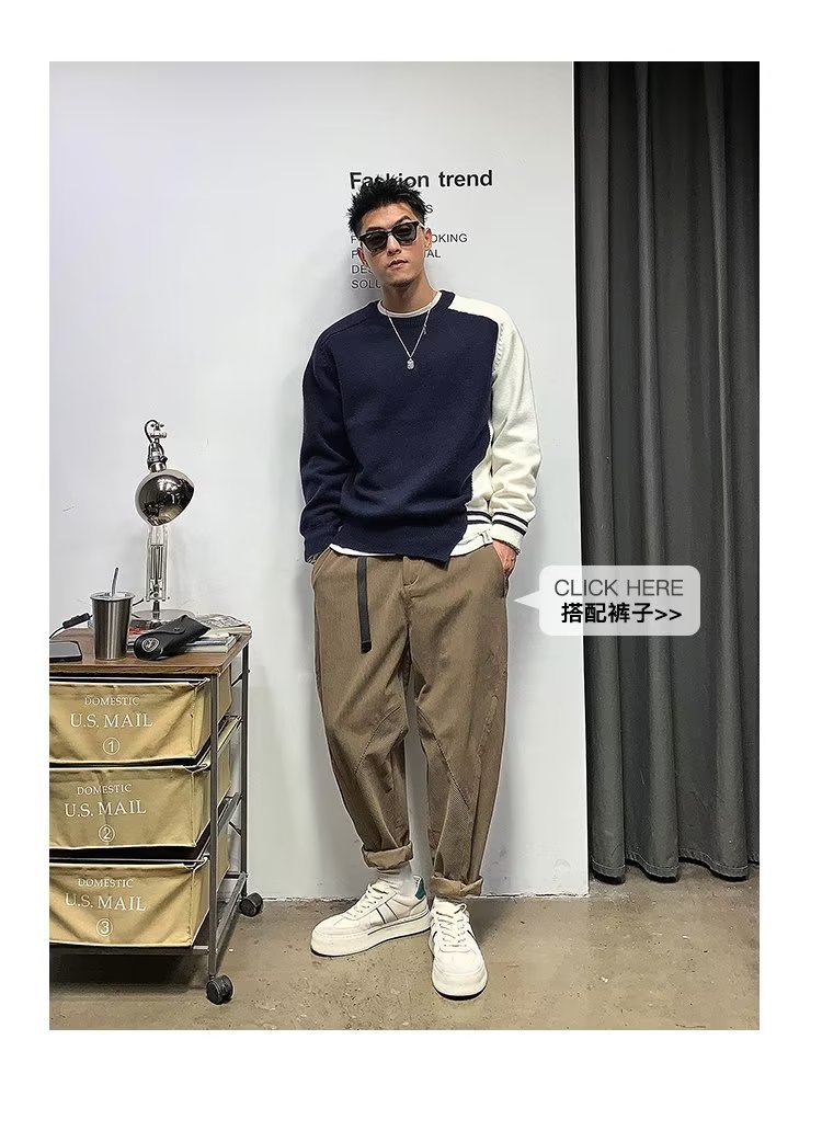 Raglan 컬러 매칭 내부 스웨터 남성 패션 브랜드 가을과 겨울 고급 스티칭 불규칙한 바닥 셔츠 탑스토어 가기