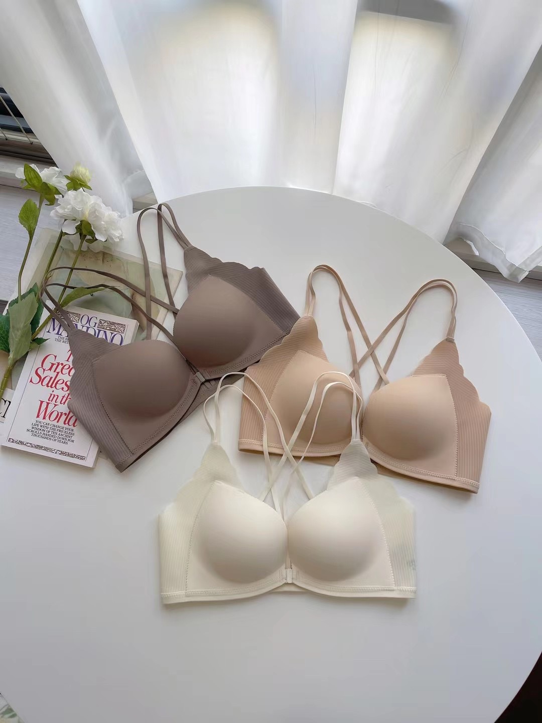 169 매끄러운 비 강철 링 3 차원 컵 얇은 컵은 전면 및 후면 버클 비 강철 링 속옷 브래지어를 모았습니다.스토어 가기