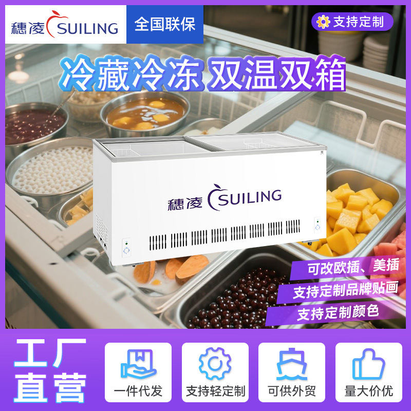 수이링 재고 냉동고 냉장 냉동 디스플레이 캐비닛 냉동 및 냉장 가능 냉장고 신선 보관 캐비닛 수평형 상업용 냉장고