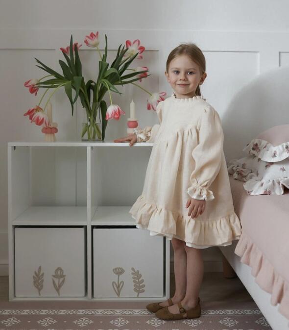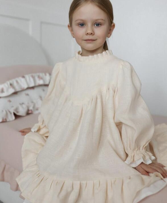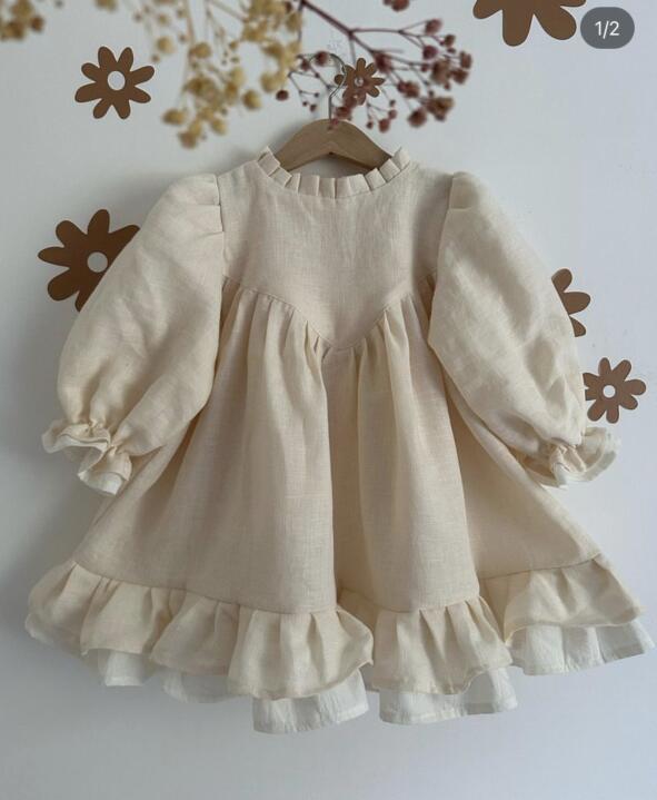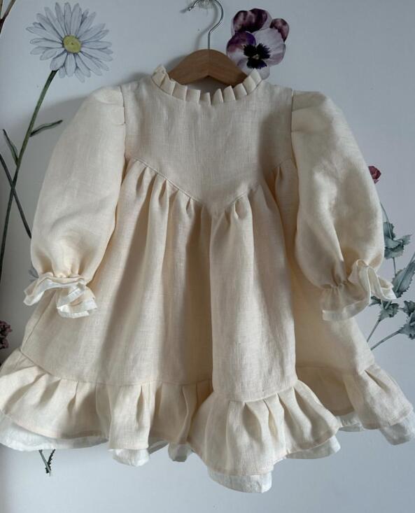 2024ins 러시아 봄 린넨 소녀 영국 스티칭 캐주얼 궁전 스타일 공주 원피스 재고스토어 가기