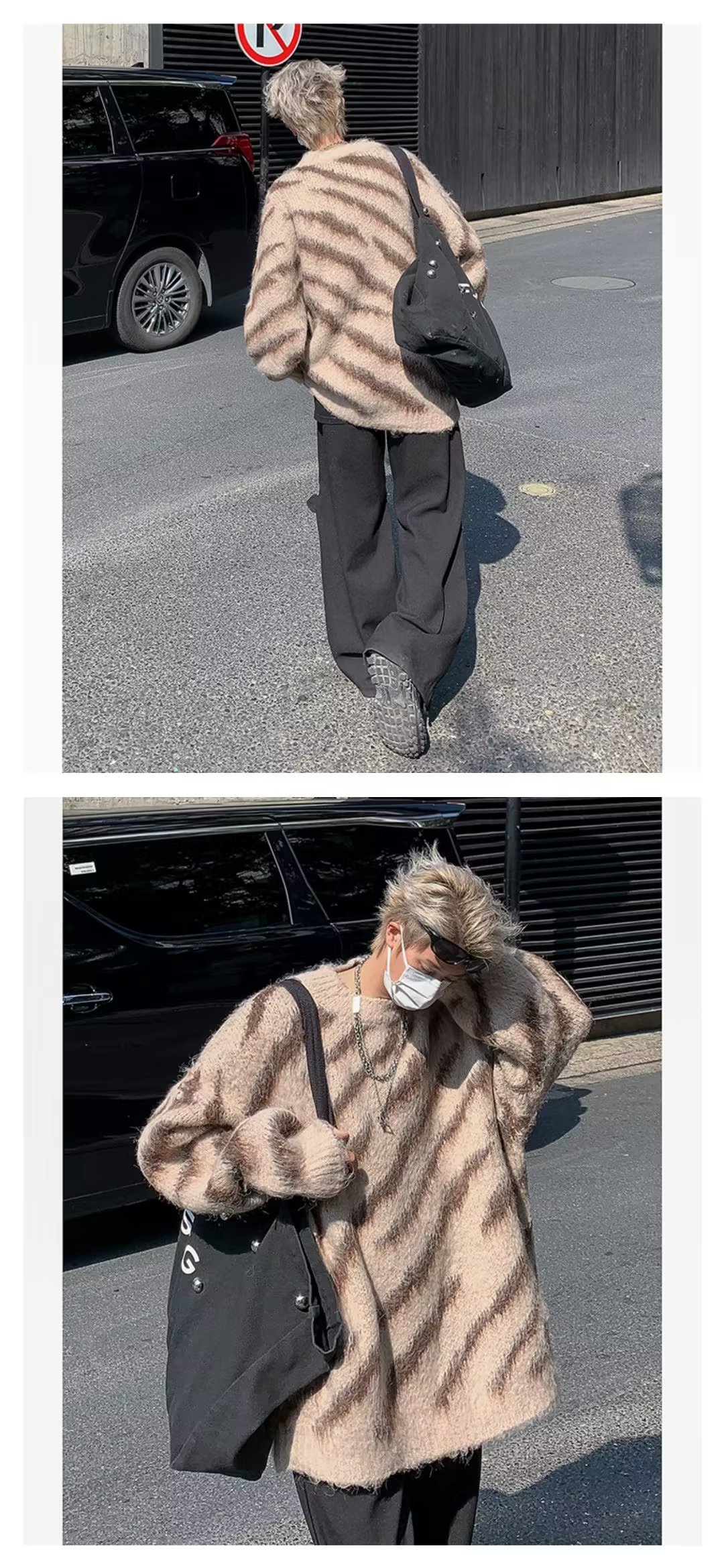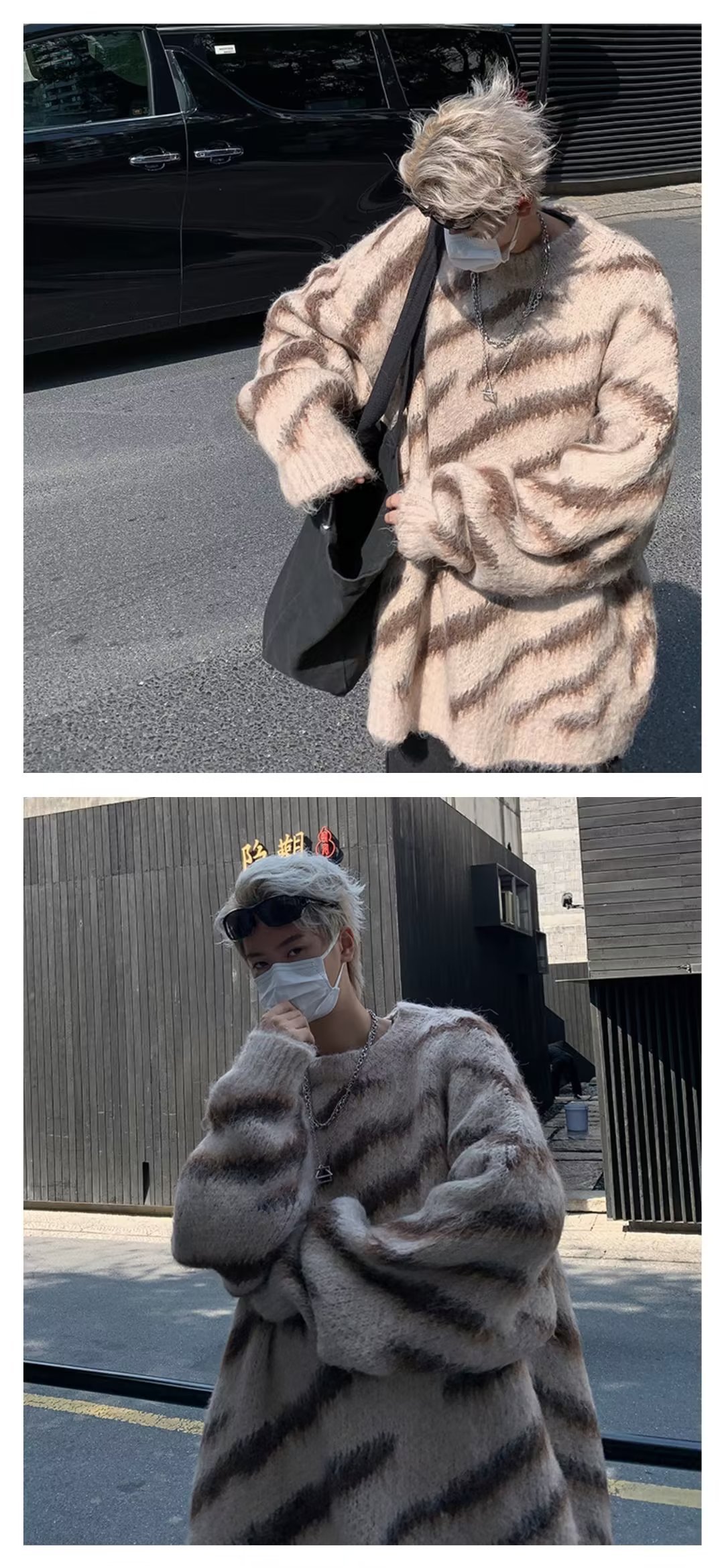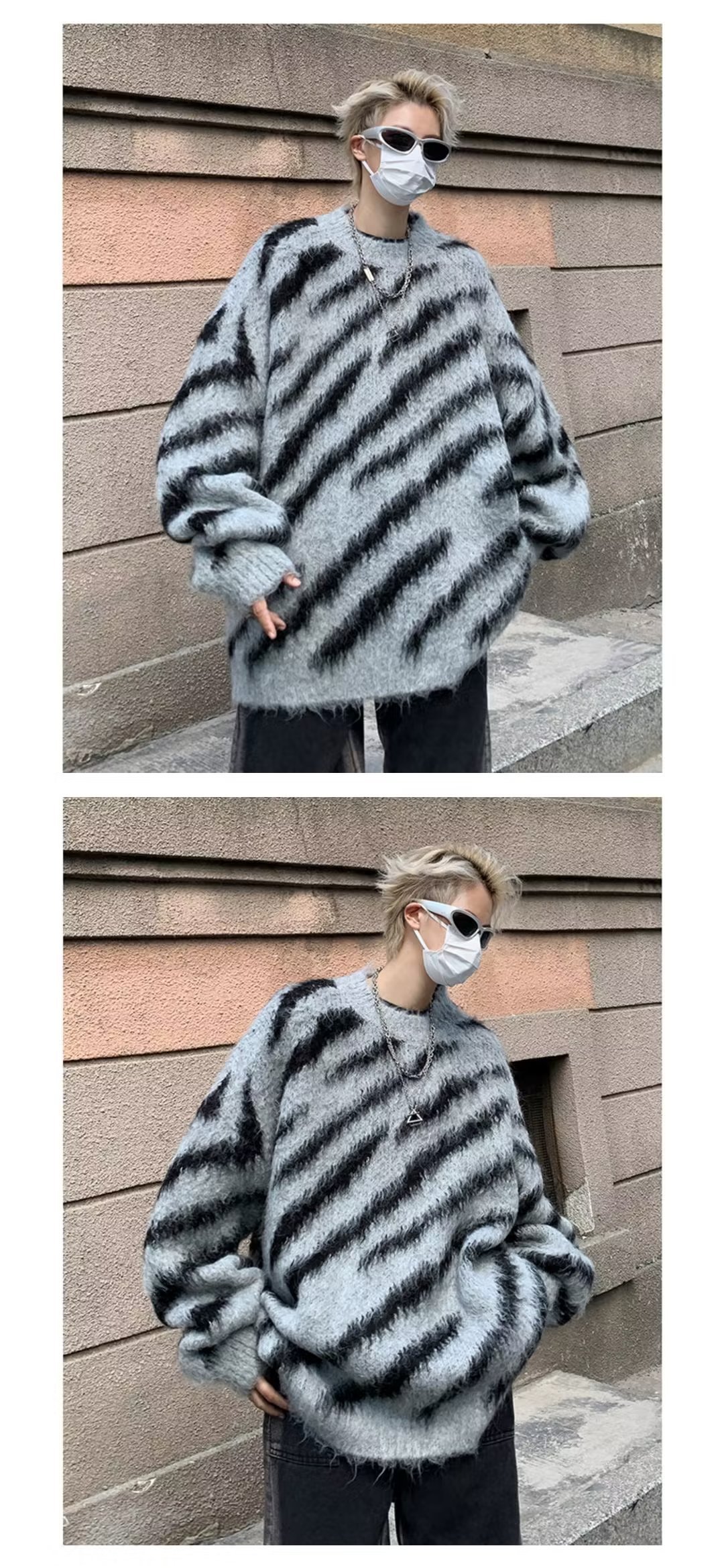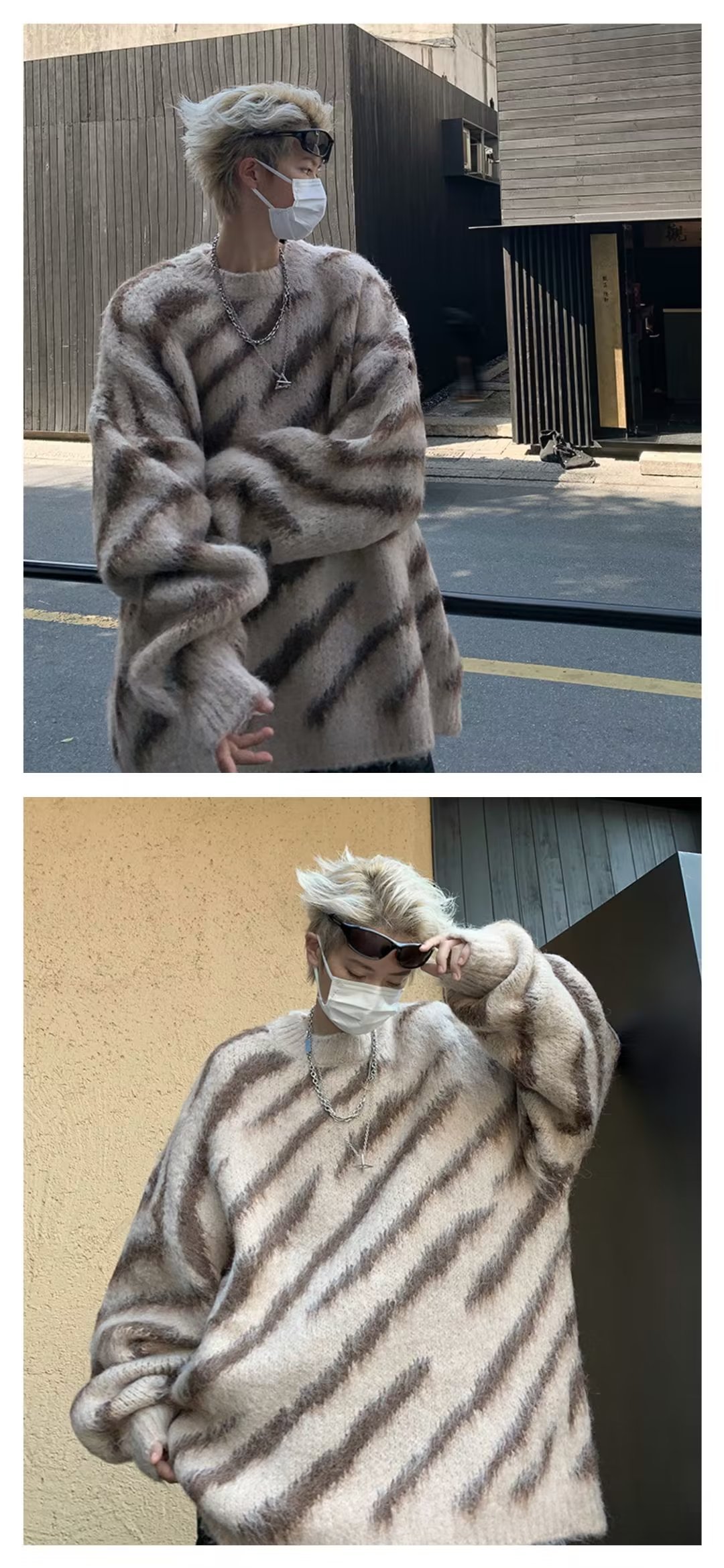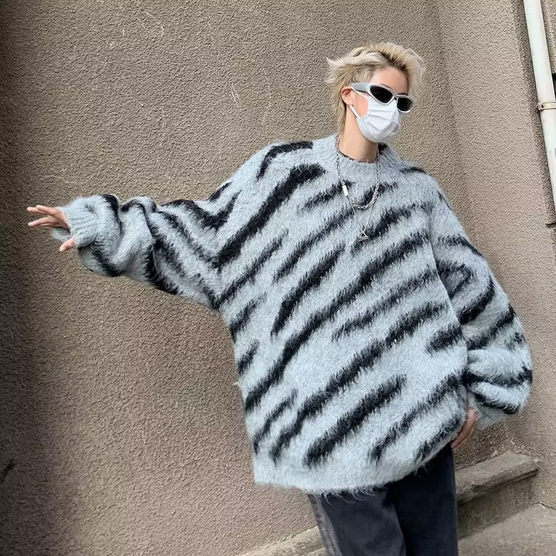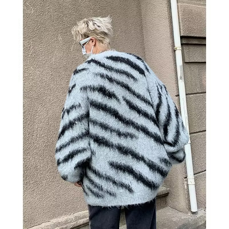 일본 줄무늬 둥근 목 스웨터 남자 2024 가을과 겨울 새로운 게으른 둥근 목 스웨터 느슨한 스웨터