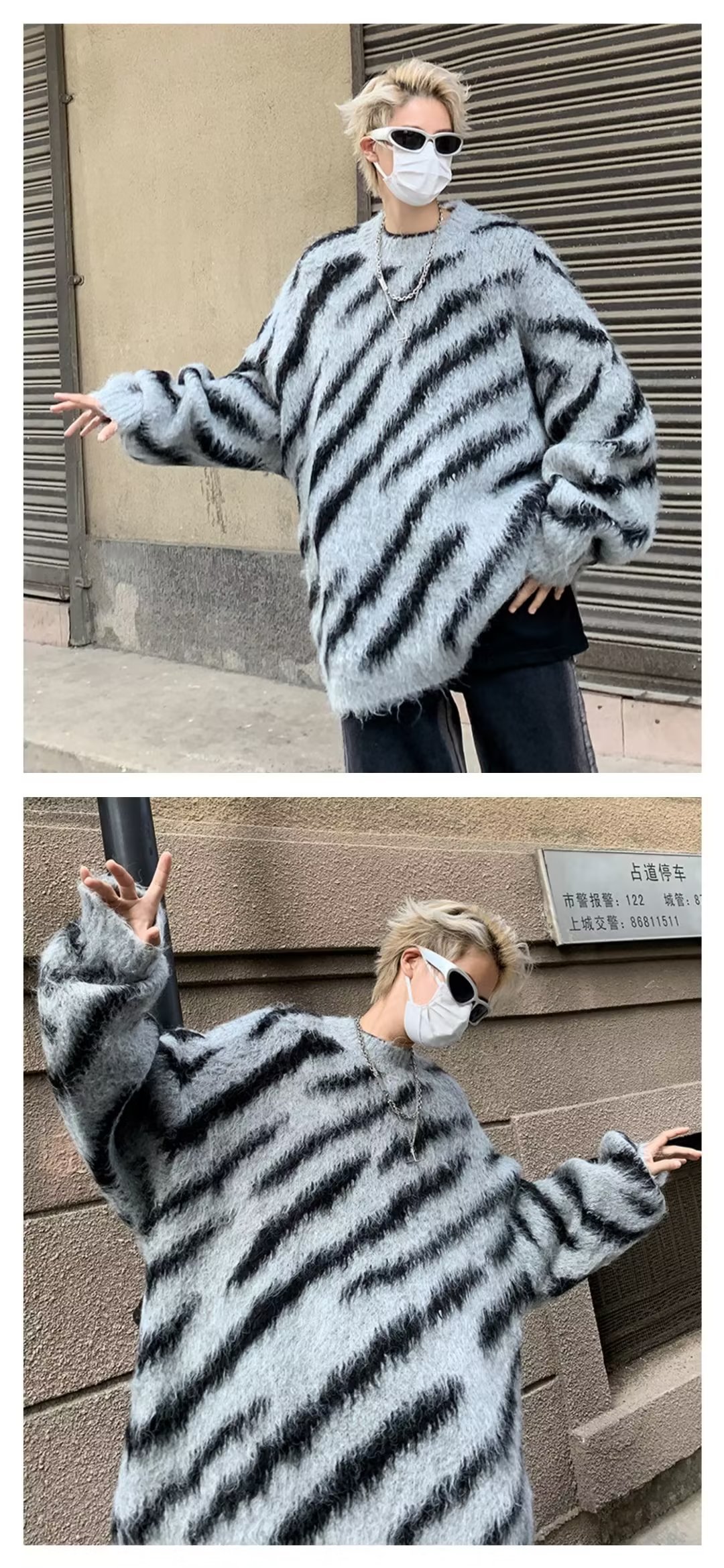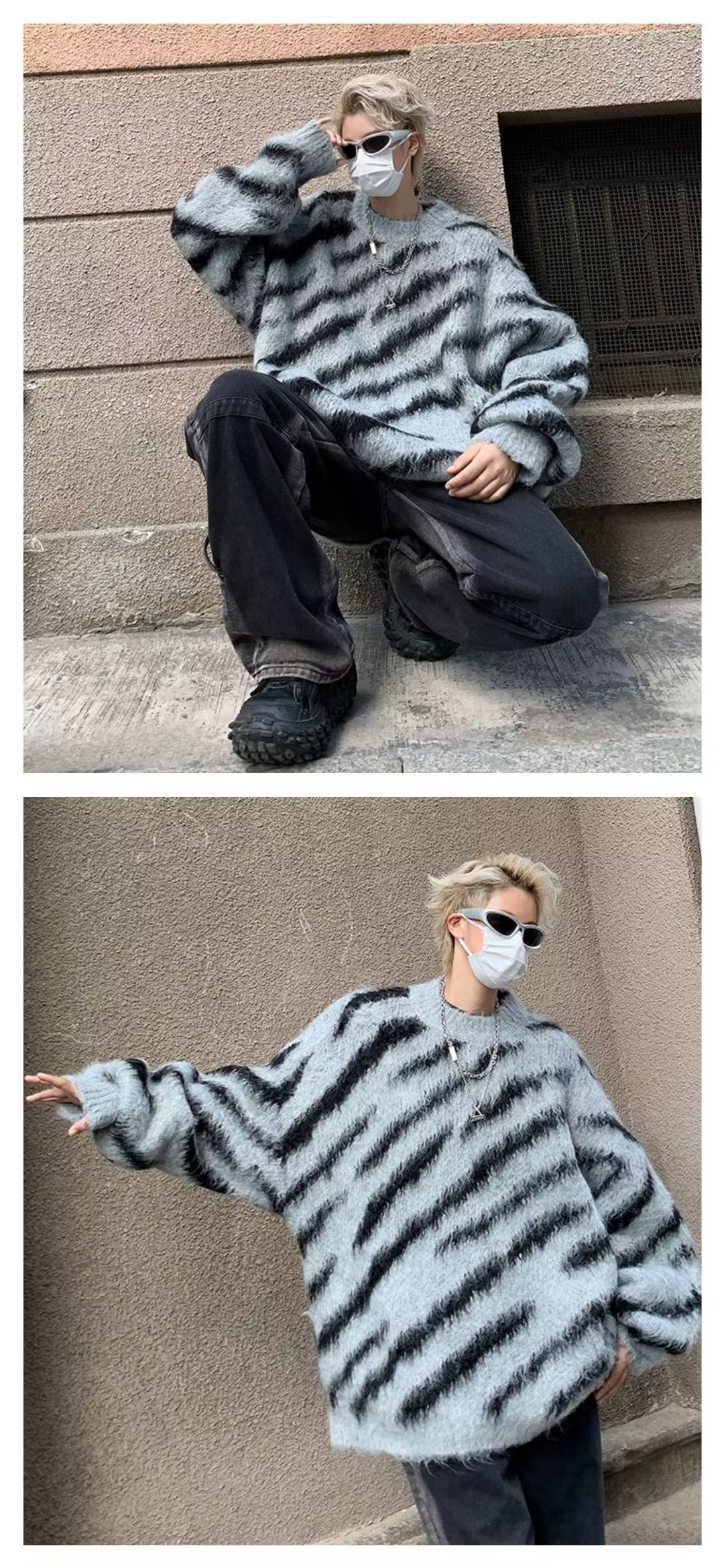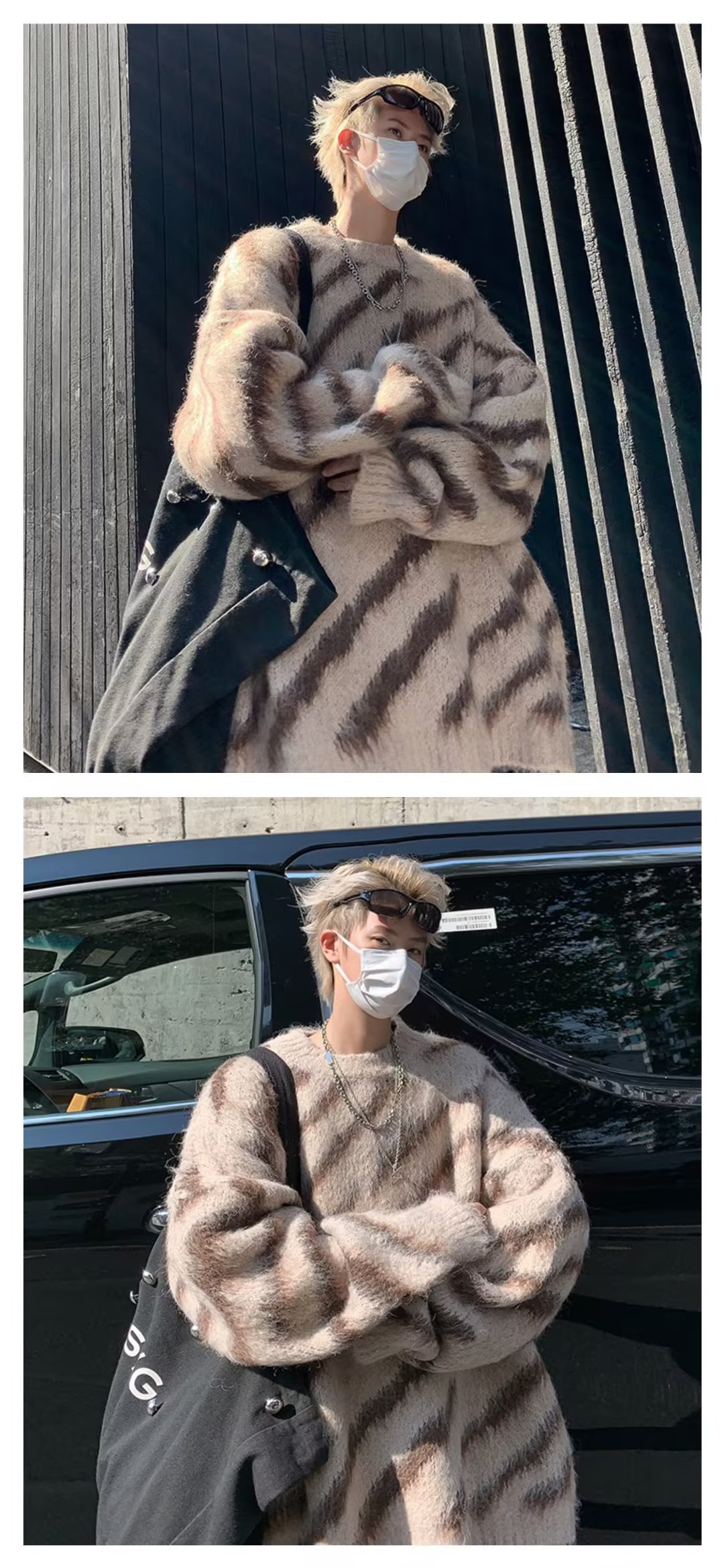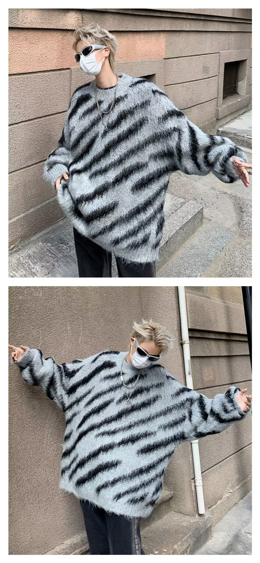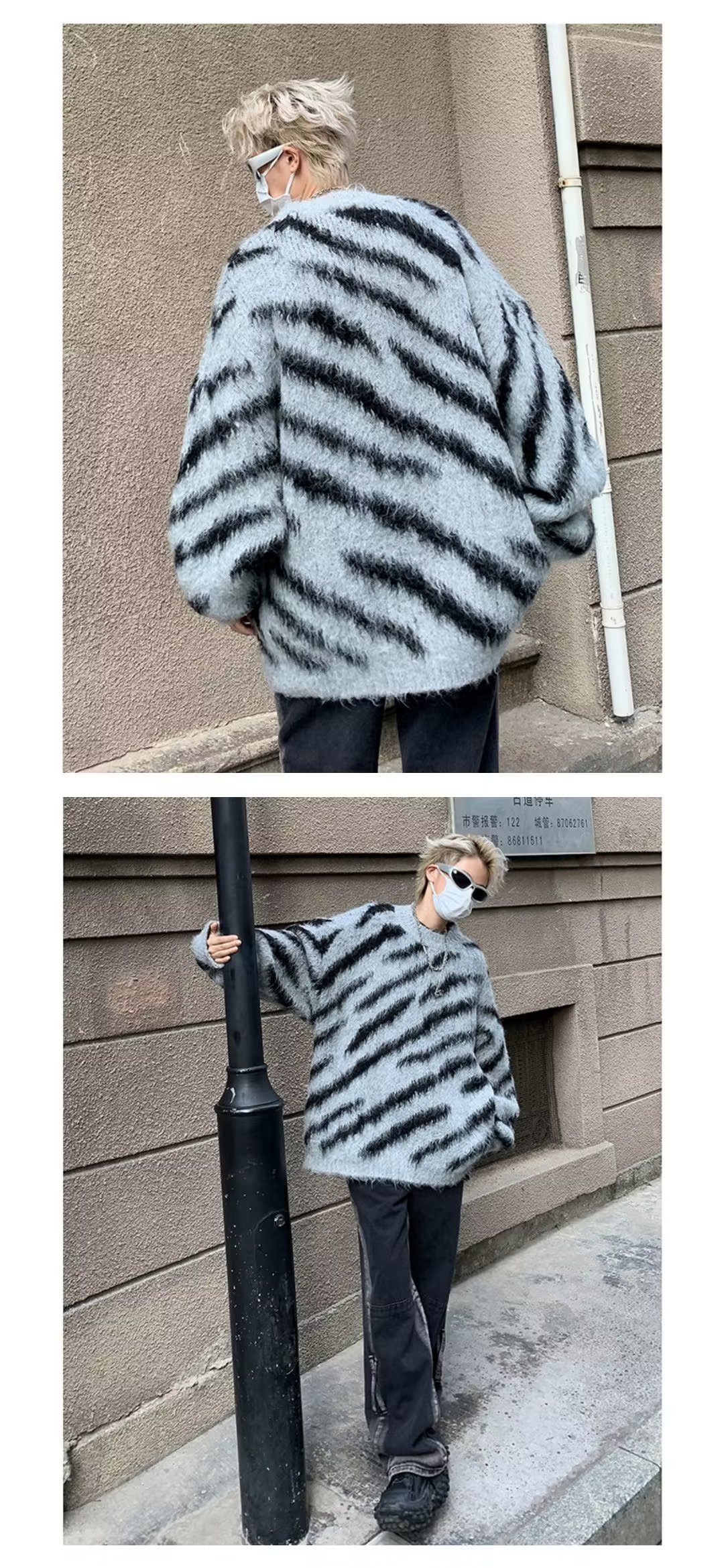 일본 줄무늬 둥근 목 스웨터 남자 2024 가을과 겨울 새로운 게으른 둥근 목 스웨터 느슨한 스웨터