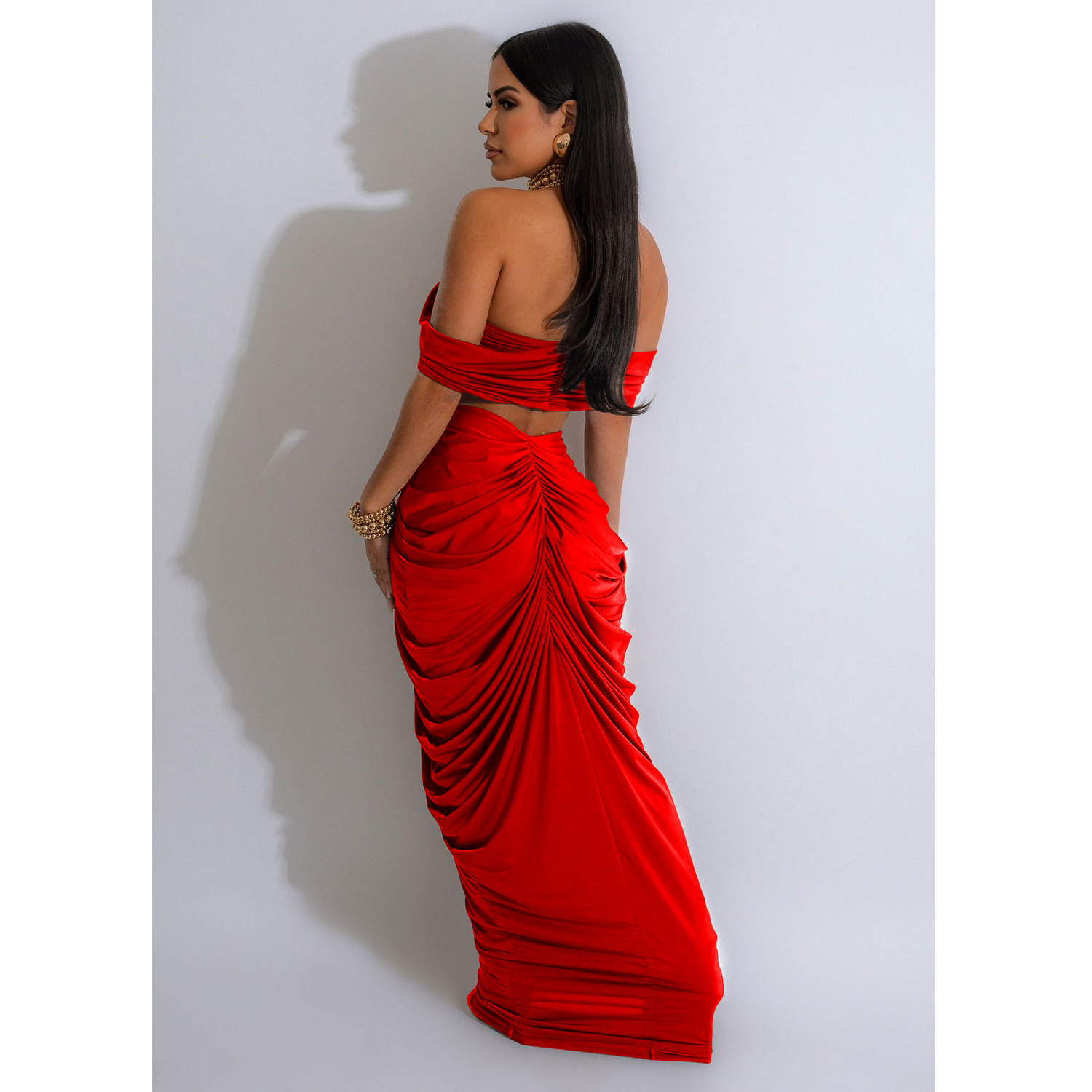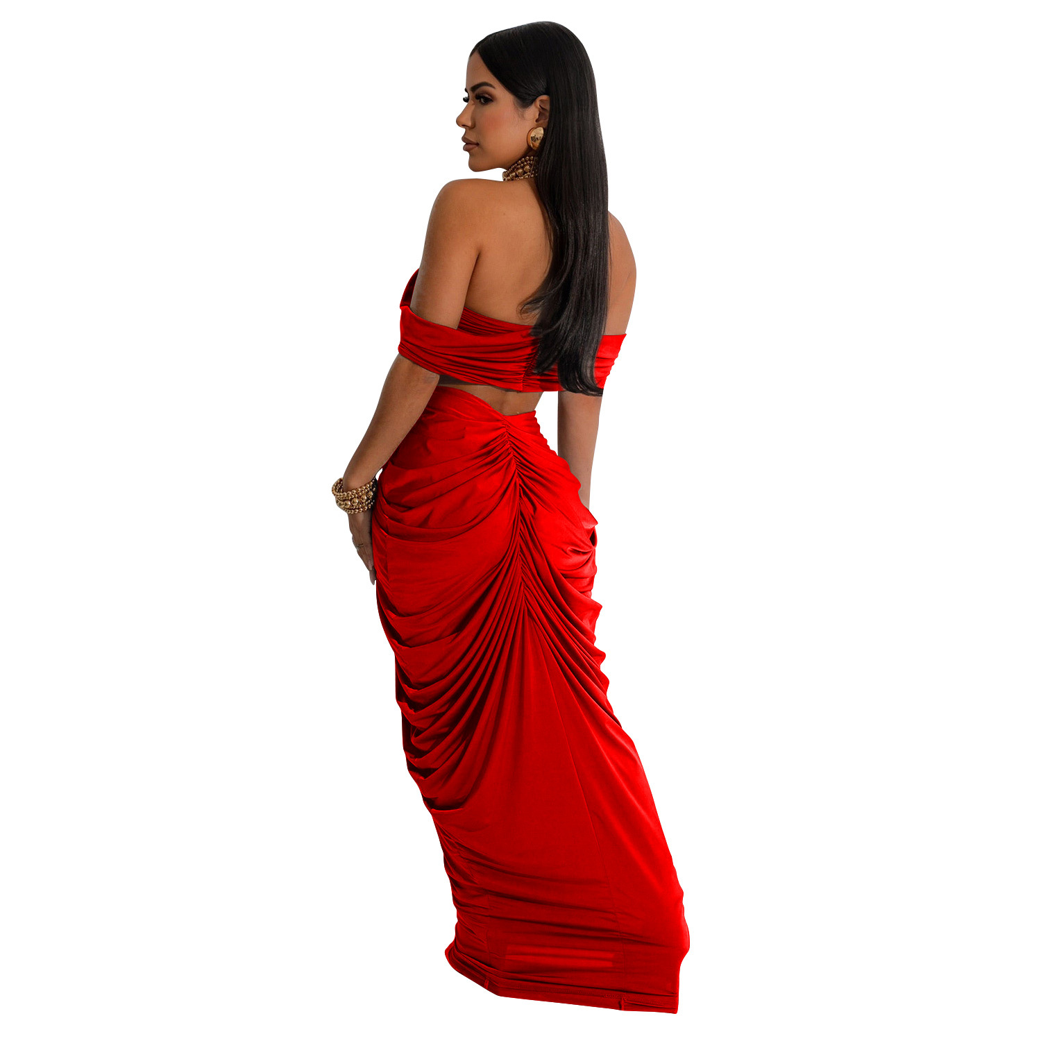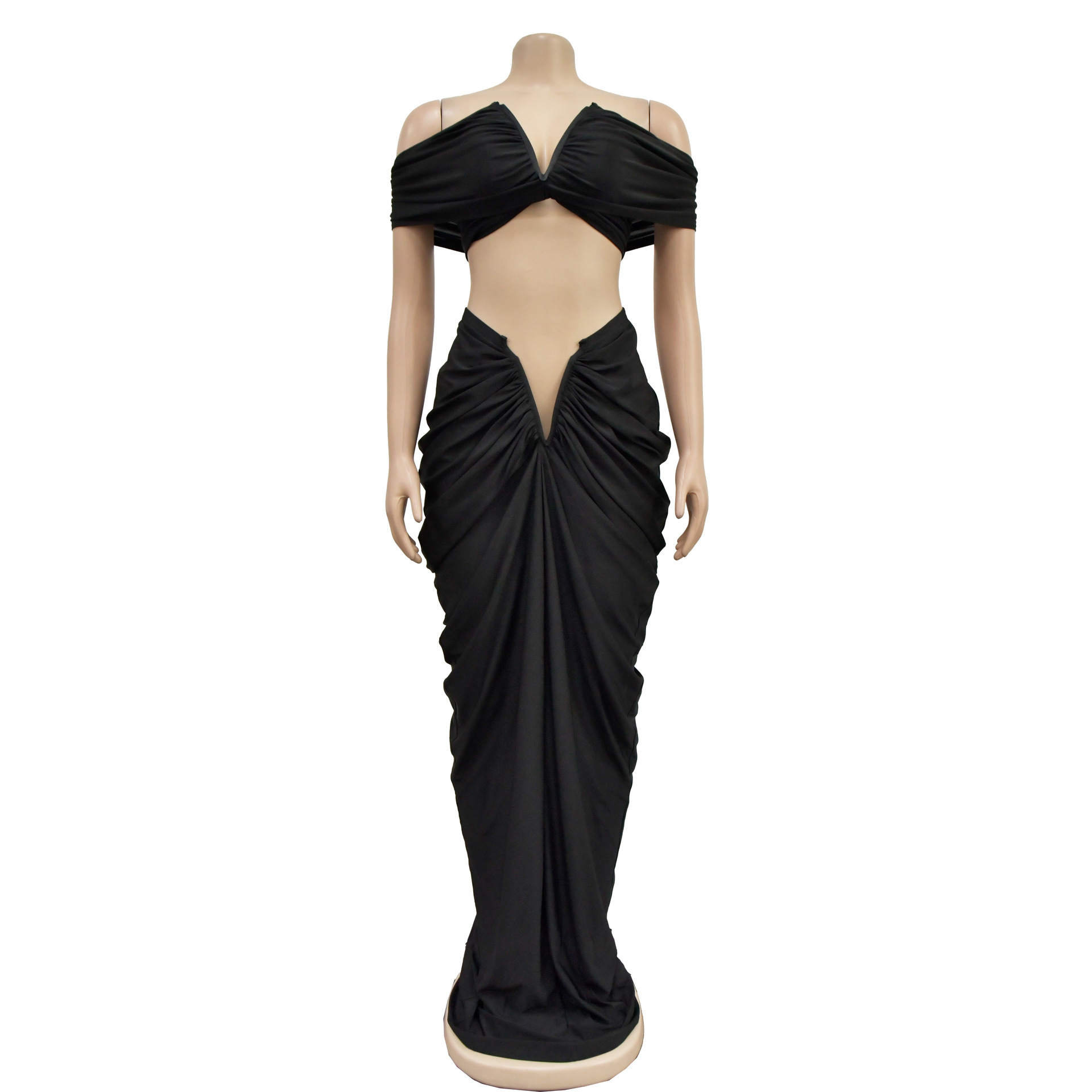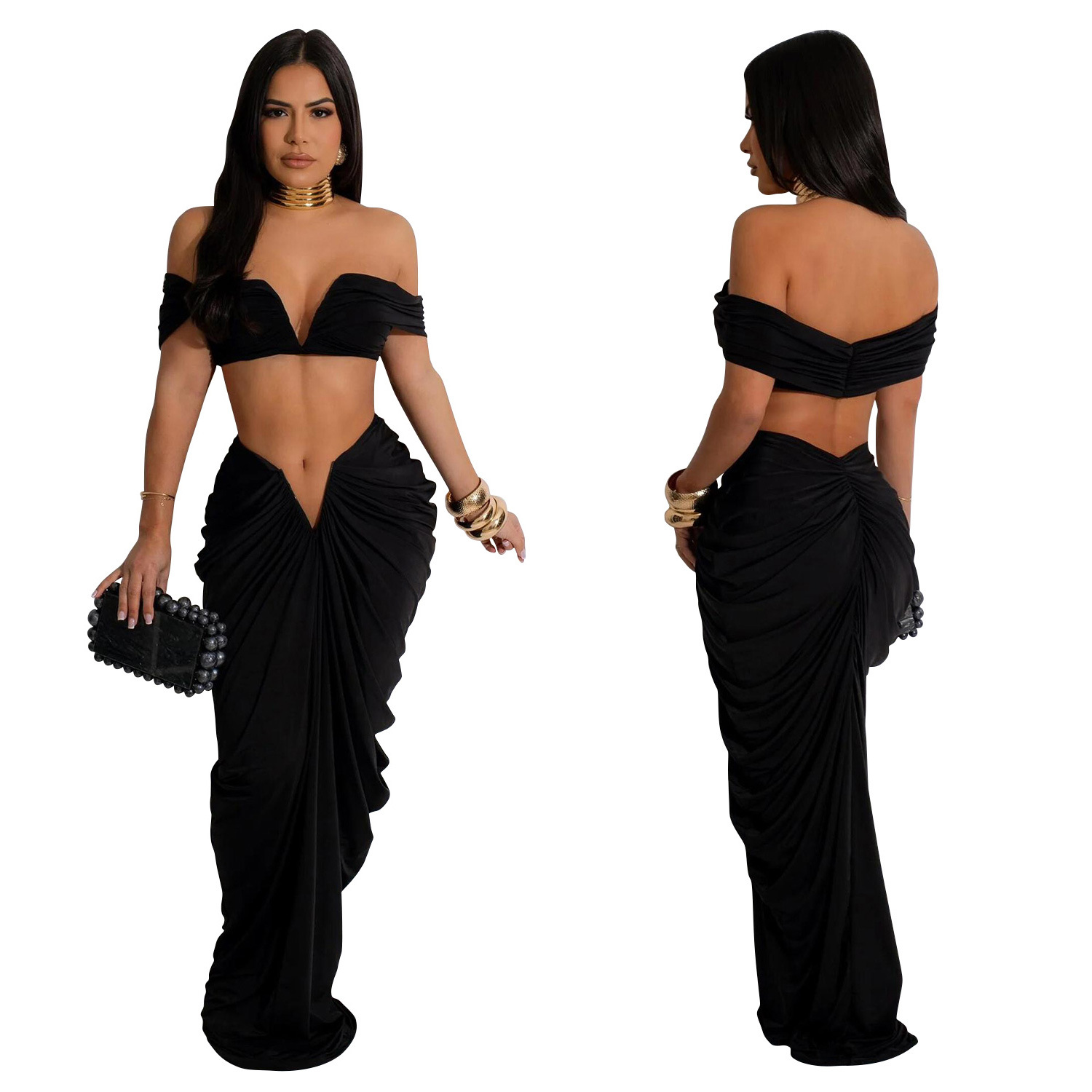 C6822 국경 간 AliExpress 아마존 유럽과 미국의 패션 여성의 단색 섹시한 끈이없는 주름진 스커트 투피스 세트스토어 가기