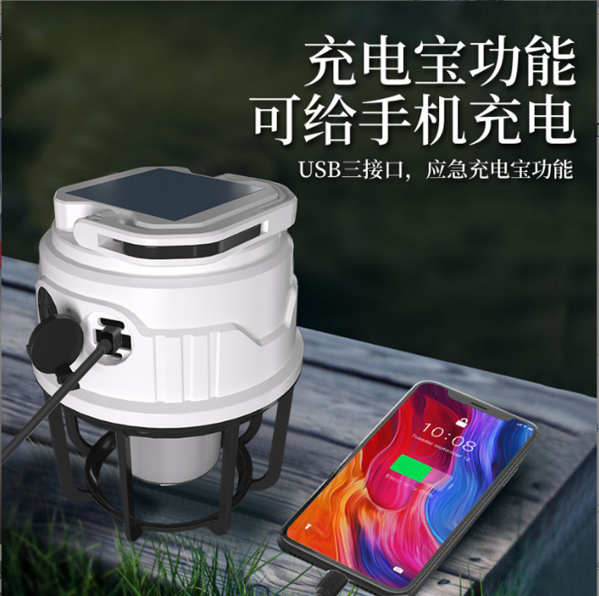 국경을 넘는 아마존 야외 캠핑 램프, 휴대용 캠핑 램프, 텐트 램프, 휴대폰 충전 조명, 태양광