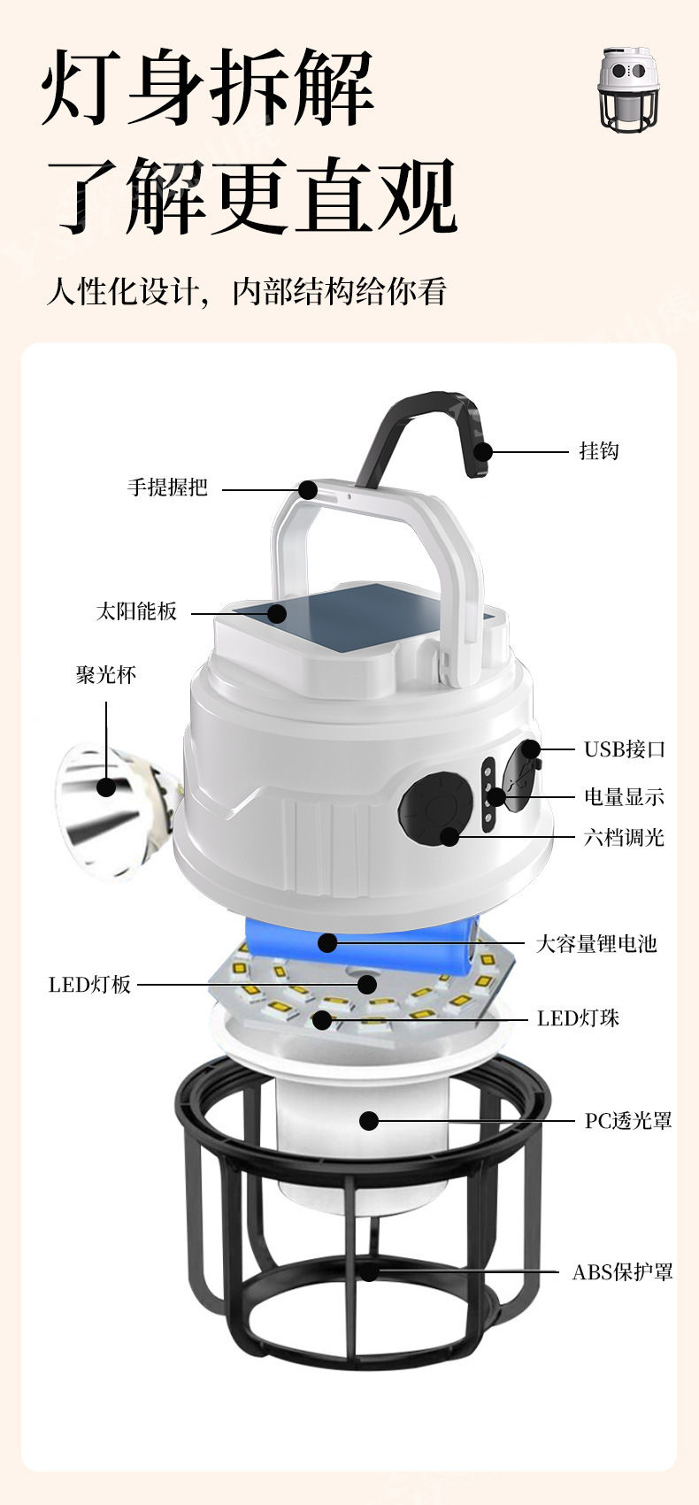 功能;双色露营灯,手电筒,