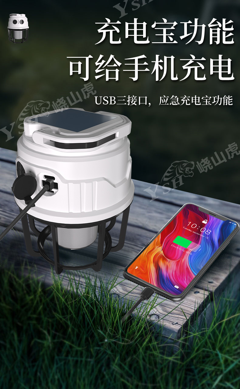 국경을 넘는 아마존 야외 캠핑 램프, 휴대용 캠핑 램프, 텐트 램프, 휴대폰 충전 조명, 태양광스토어 가기