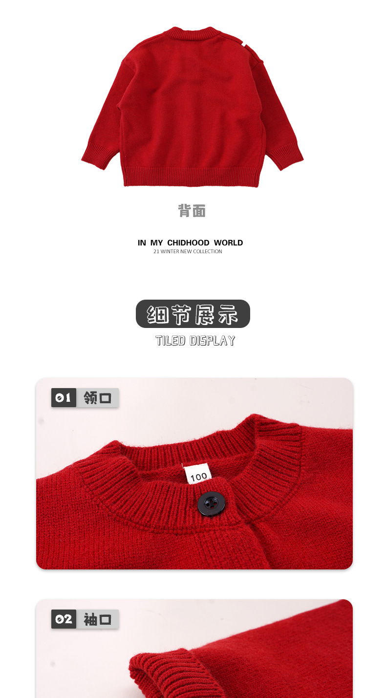 2023 가을과 겨울 새로운 어린이 스웨터 아동복 유행 둥근 목 서양식 모리 중국 빨간 니트 카디건