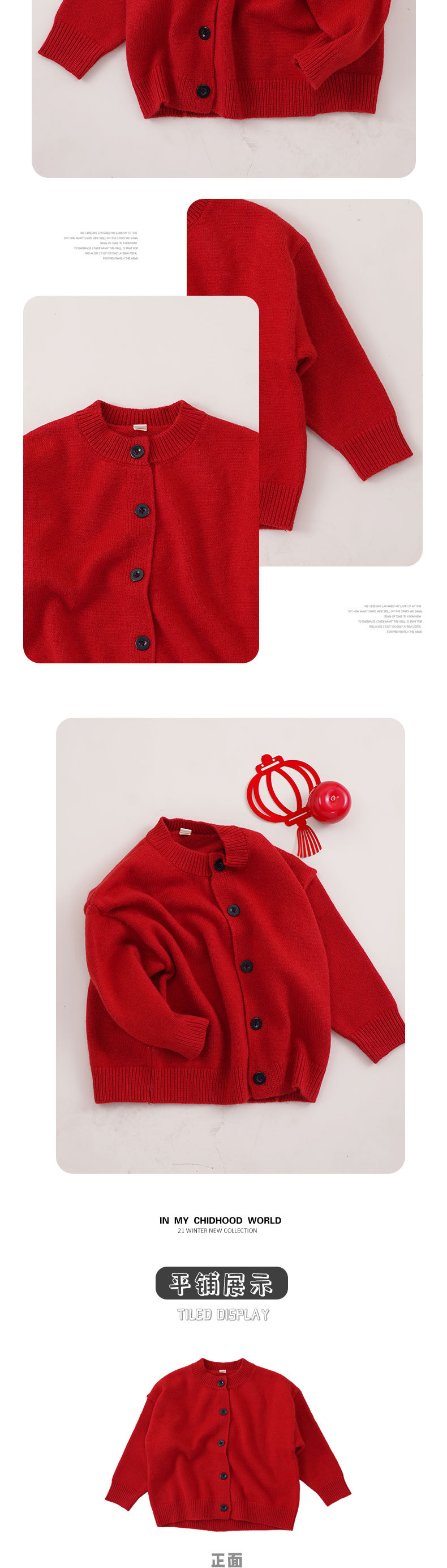 2023 가을과 겨울 새로운 어린이 스웨터 아동복 유행 둥근 목 서양식 모리 중국 빨간 니트 카디건스토어 가기