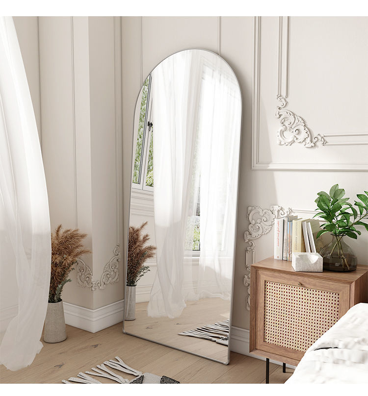 아치형 전신 거울 전체 길이 거울 바닥 거울 슬리밍 의류 매장 피팅 거울 셀카 알루미늄 합금 슈퍼 화이트