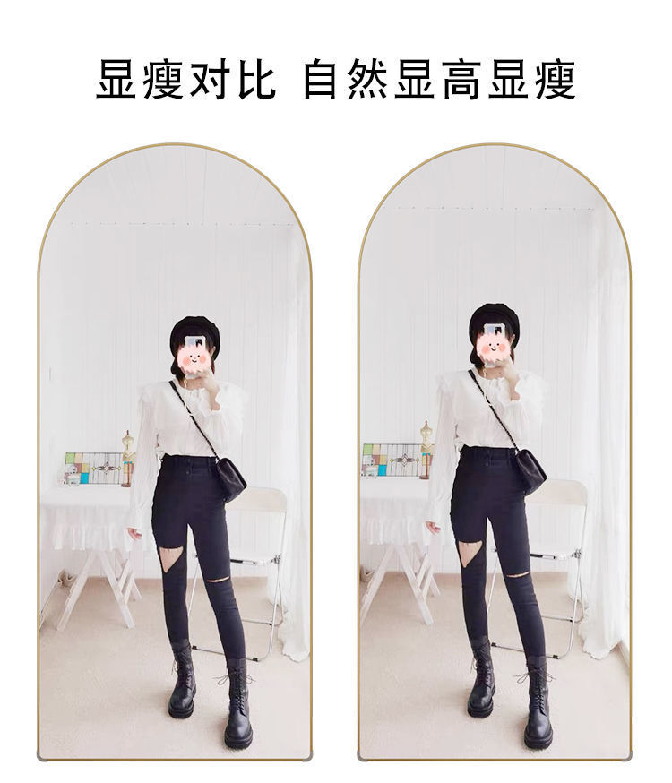아치형 전신 거울 전체 길이 거울 바닥 거울 슬리밍 의류 매장 피팅 거울 셀카 알루미늄 합금 슈퍼 화이트스토어 가기