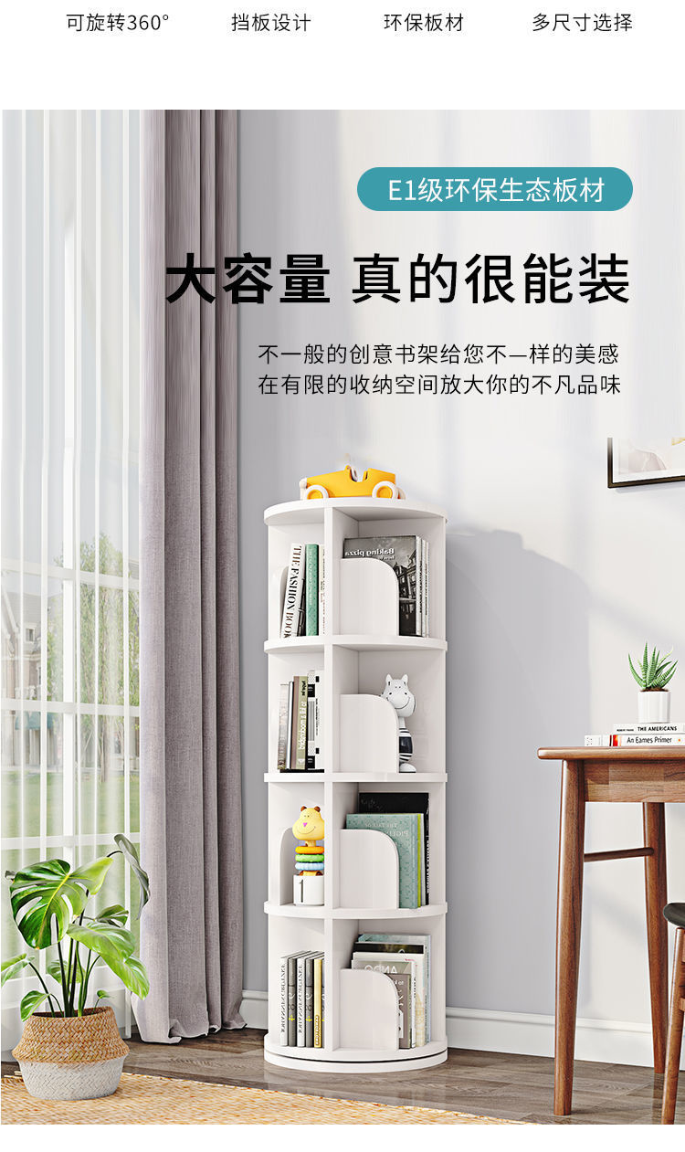 360 도 회전 책장 가정용 간단한 바닥 저장 랙 경제적 인 저장 랙 어린이 학생 코너 책장