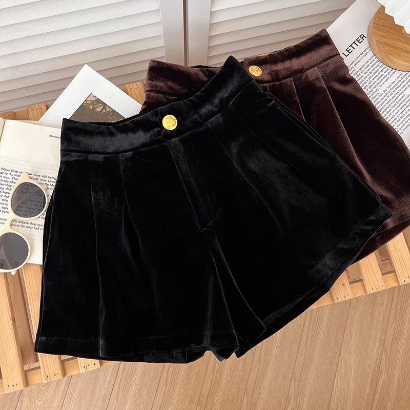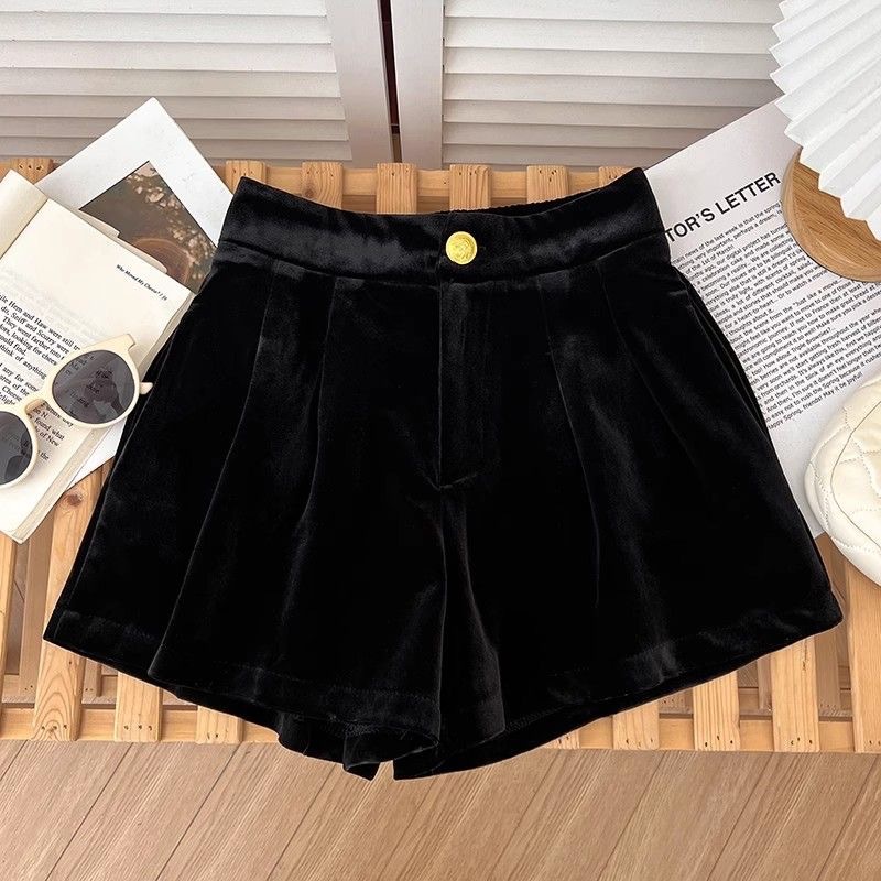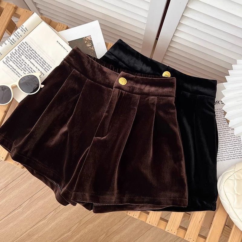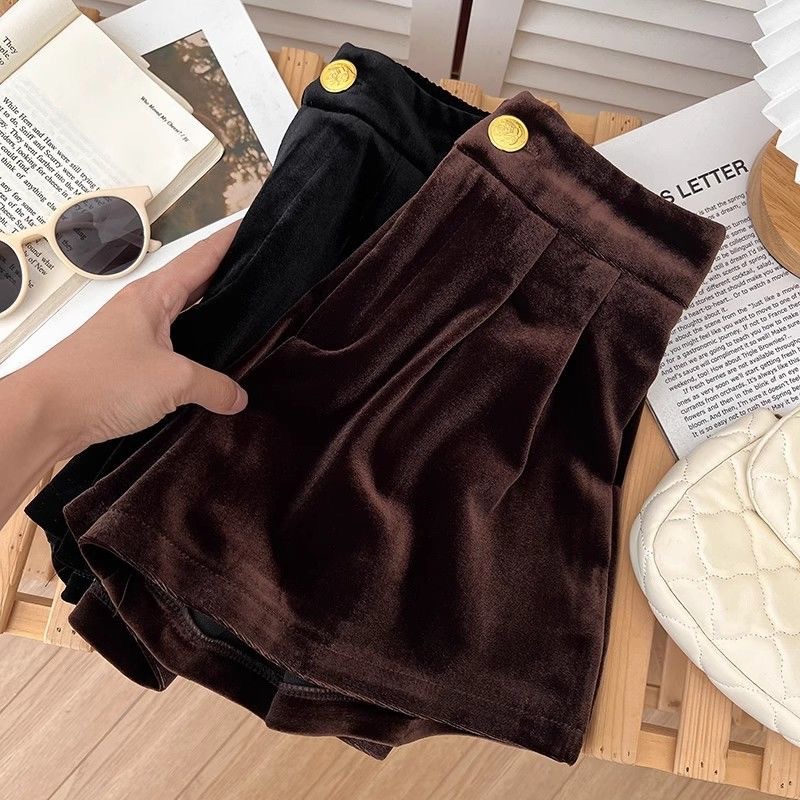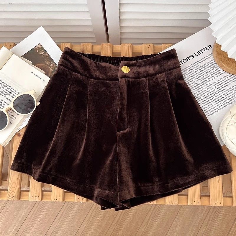 여자 겨울 새로운 한국 스타일 벨벳 탄성 높은 허리 세트 반바지 넓은 다리 바지 캐주얼 바지 유행 올 매치 부츠 바지스토어 가기