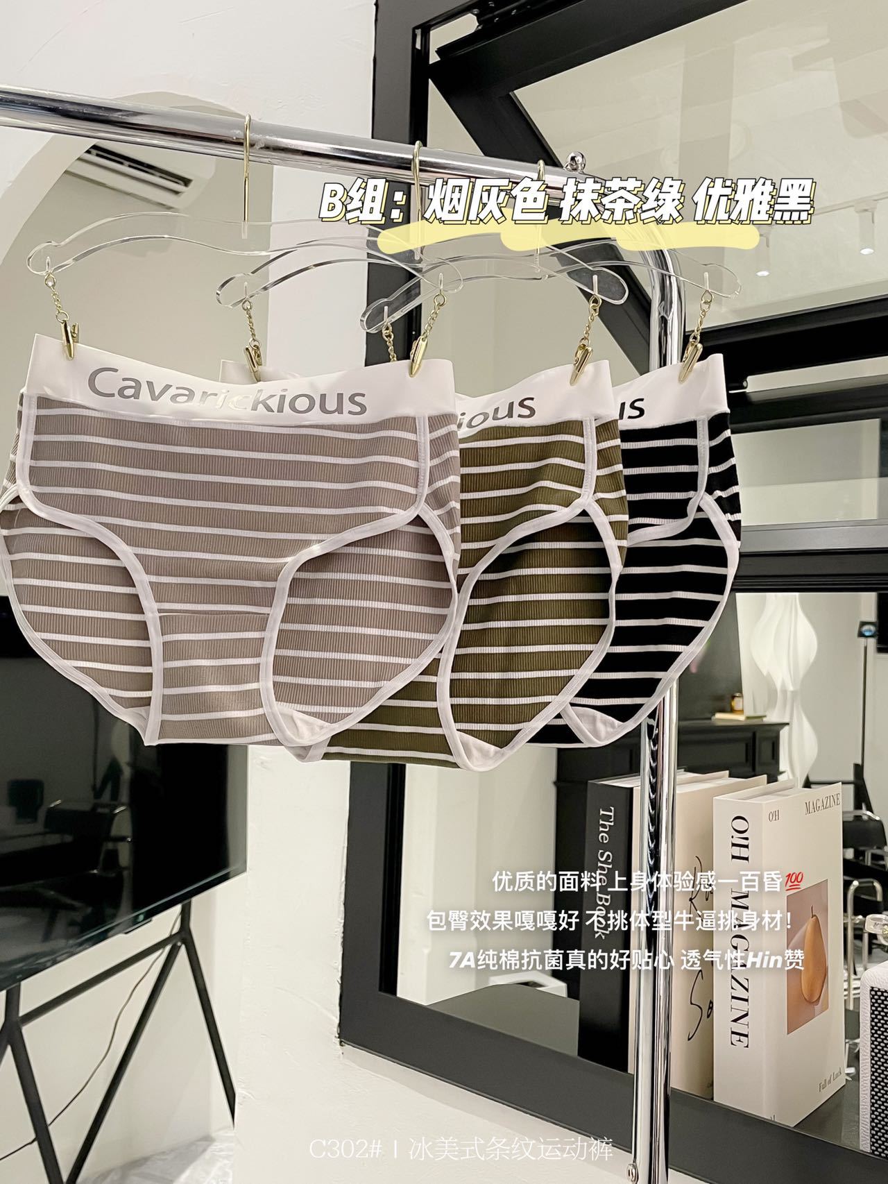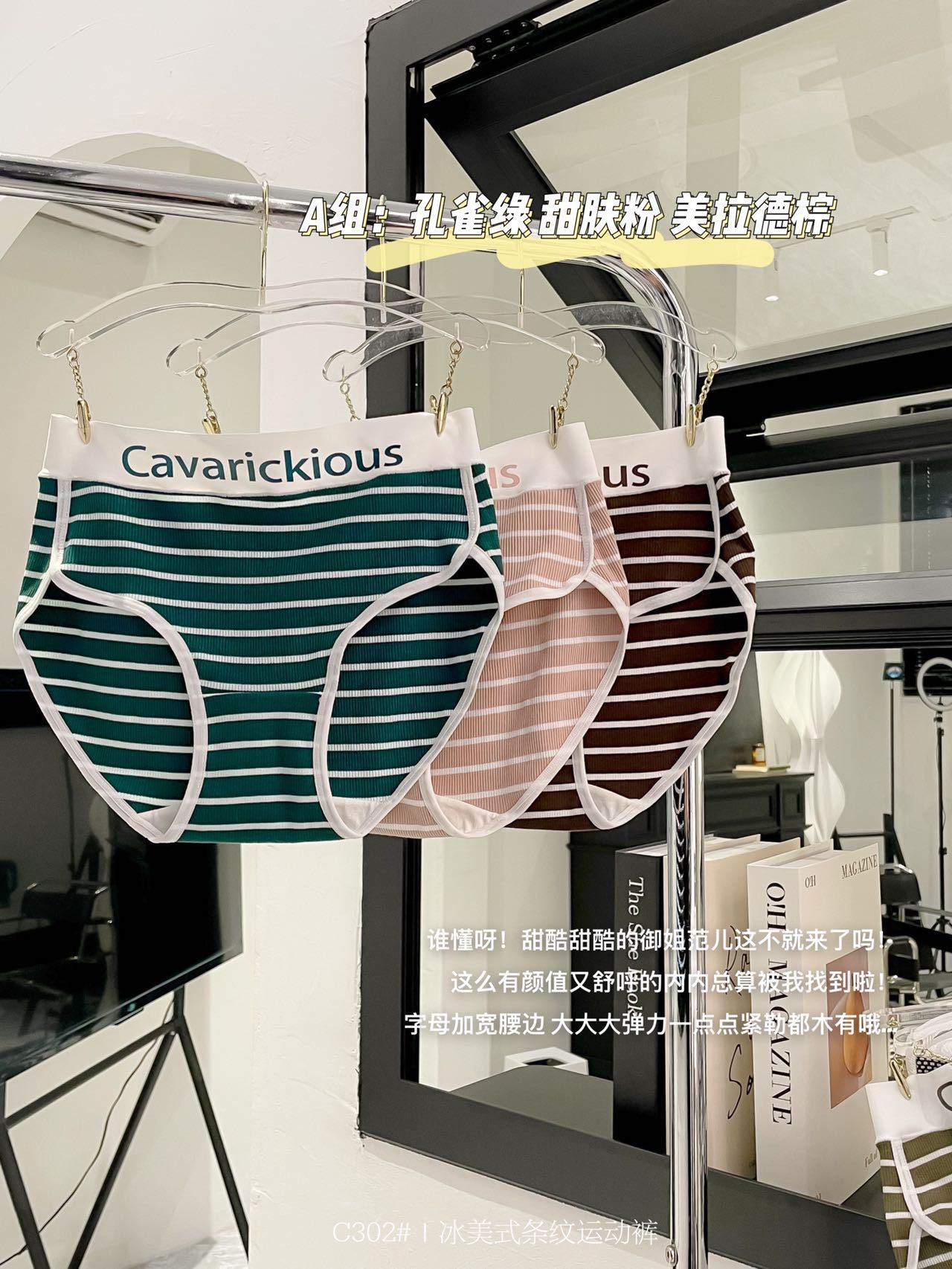 소녀의 높은 슬릿 섹시한 스포츠 스트라이프 소녀의 속옷 코튼 가랑이 일본 간단한 문자 중간 허리 브리프