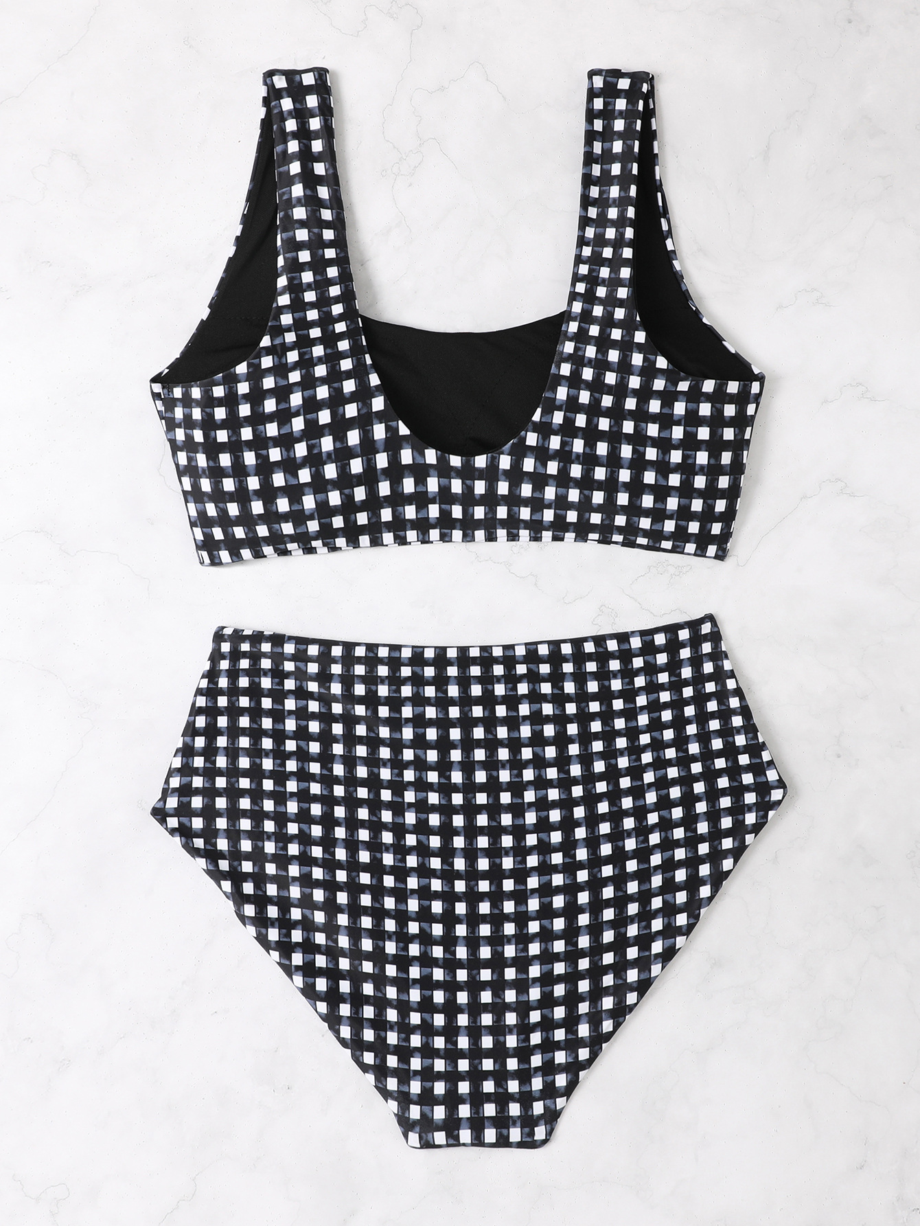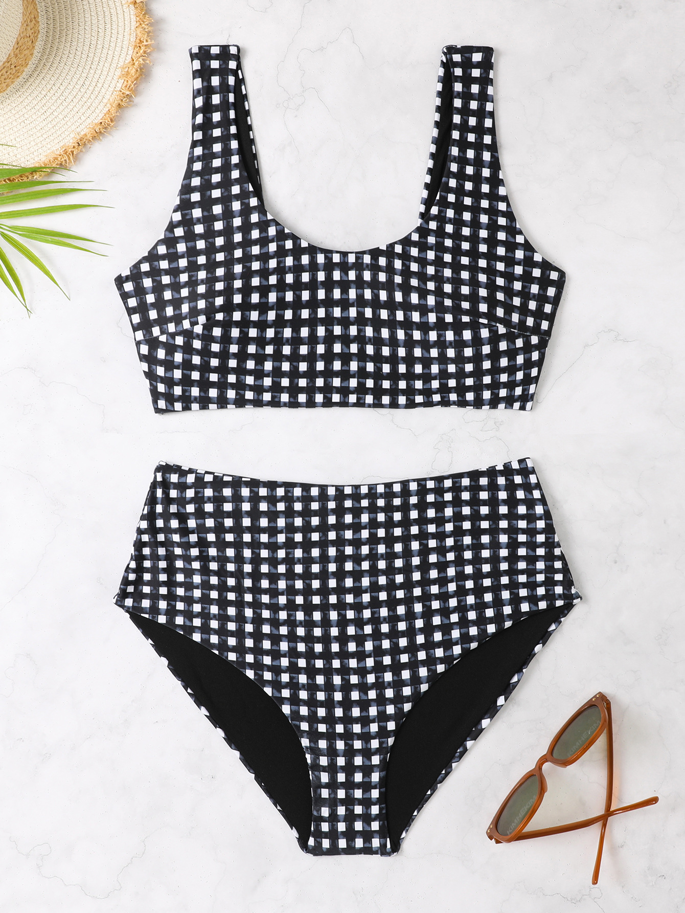 스플릿 2 점 수영복 여성 AliExpress 아마존 수영복 클래식 하이 웨이스트 플레이드 유럽과 미국 스플릿 수영복