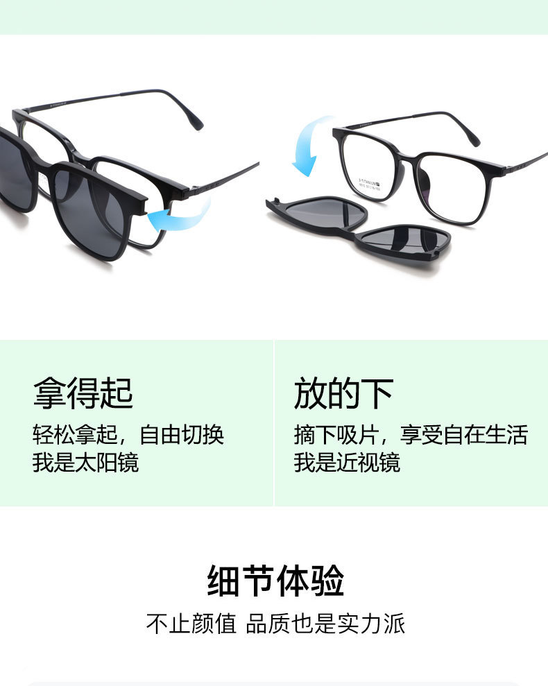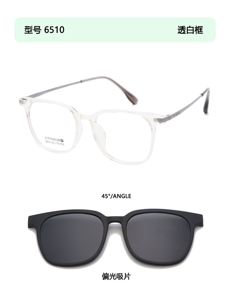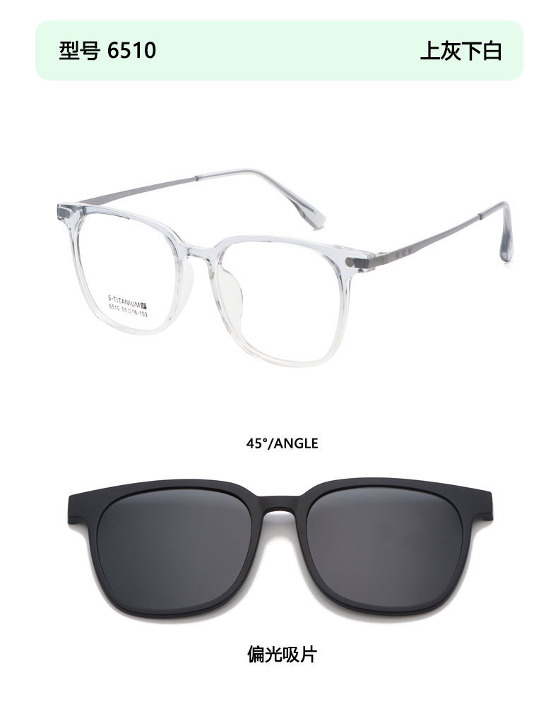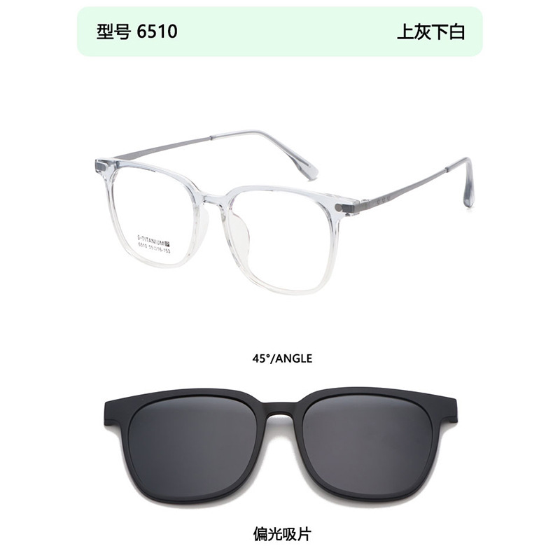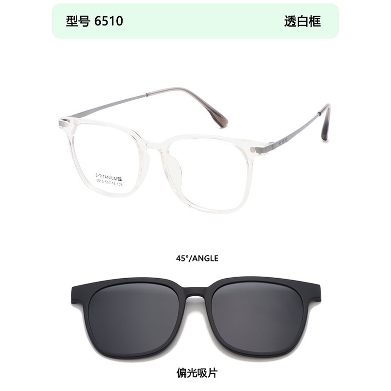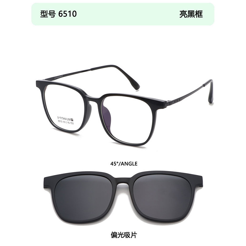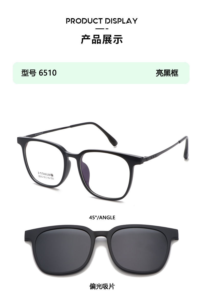 TR 자기 세트 안경 티타늄 다리 편광 자외선 방지 원 미러 이중 사용 6510 구동 안경은 고도 근시 안경을 장착 할 수 있습니다