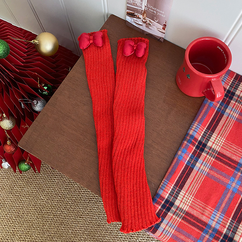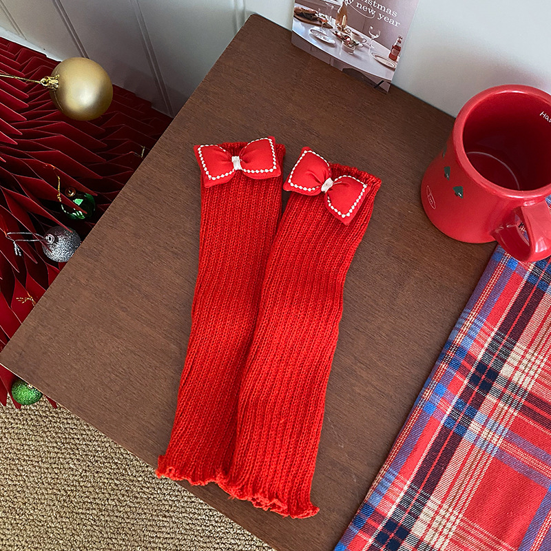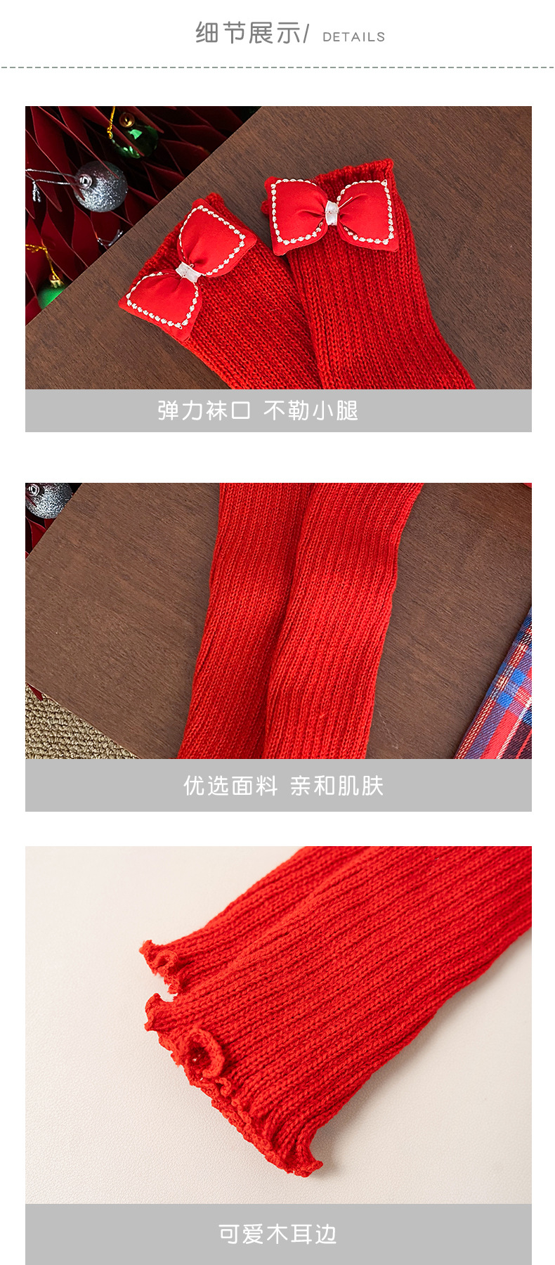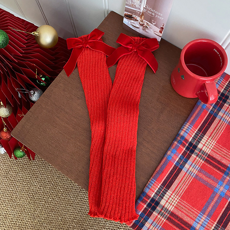 양말 어린이 스택 양말 가을과 겨울 큰 빨간 활 니트 양모 다리 양말 새해 귀여운 아기 다리 커버