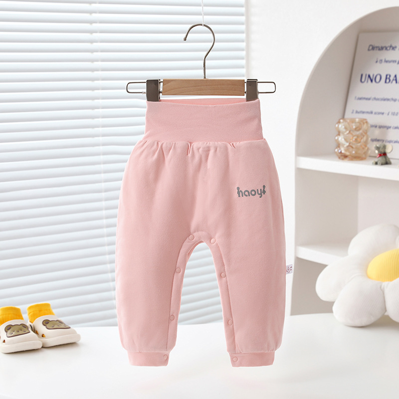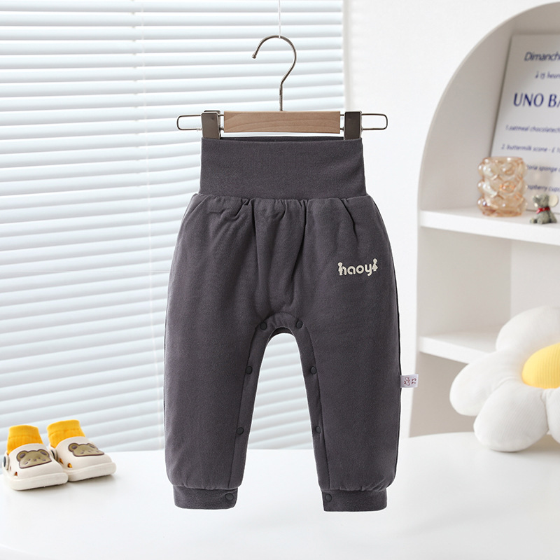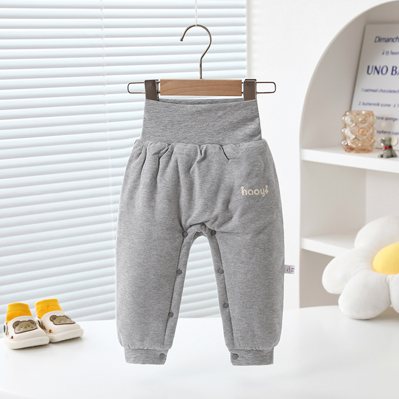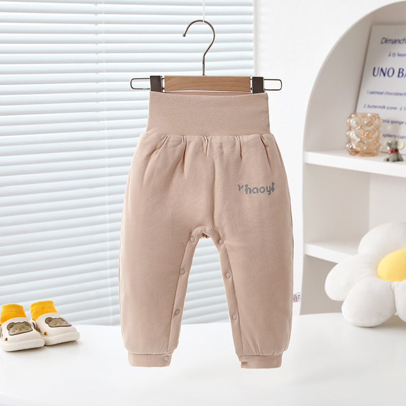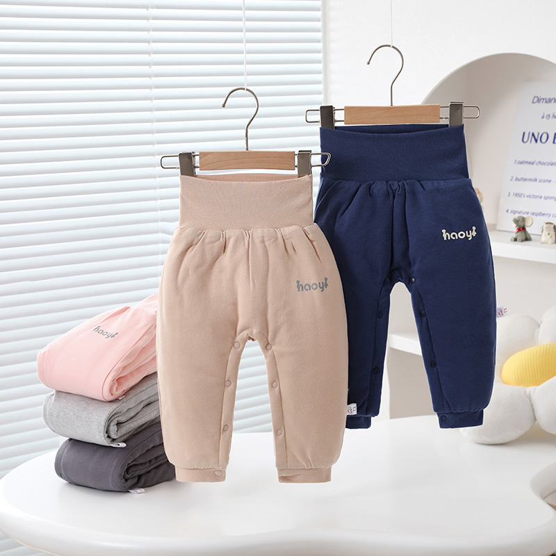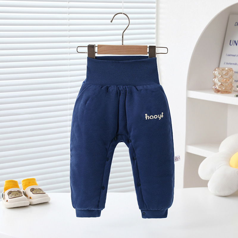 겨울 아기 푸시 버튼 큰 pp 바지 두꺼운 겨울면 바지 퀼트 아기 따뜻한 바지 높은 허리 배 보호 봄과 가을