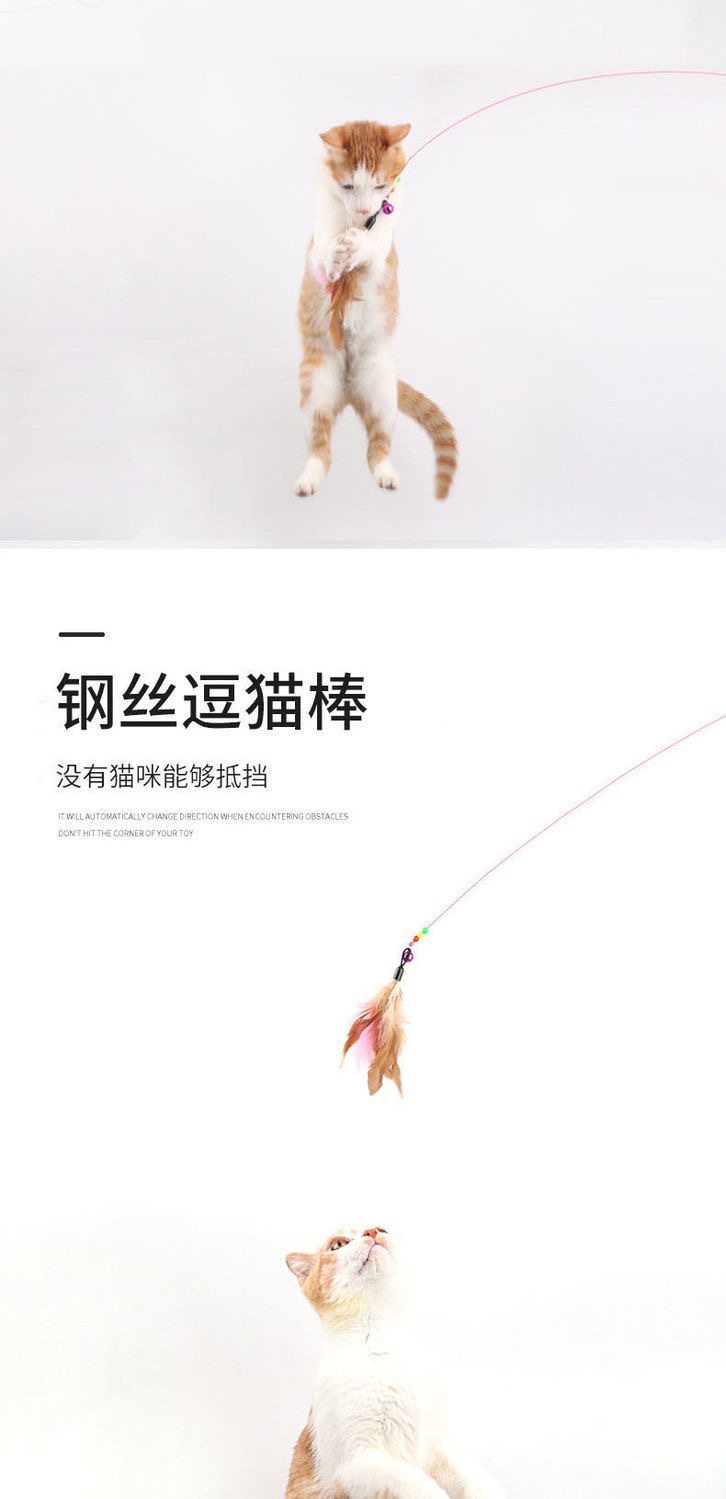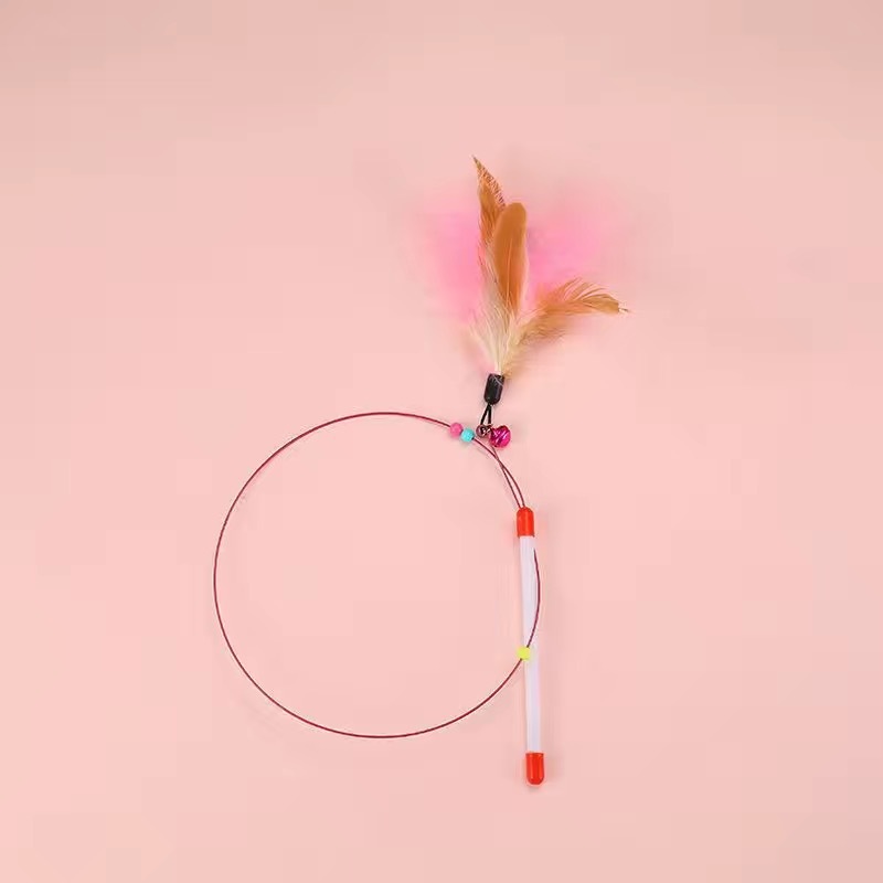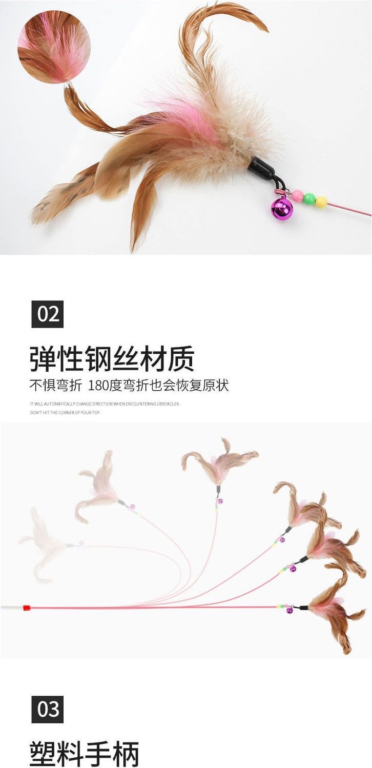 공장 도매 강철 와이어 깃털 고양이 스틱 교체 머리 물린 방지 애완 동물 고양이 장난감 국경 대화 형 고양이 장난감스토어 가기