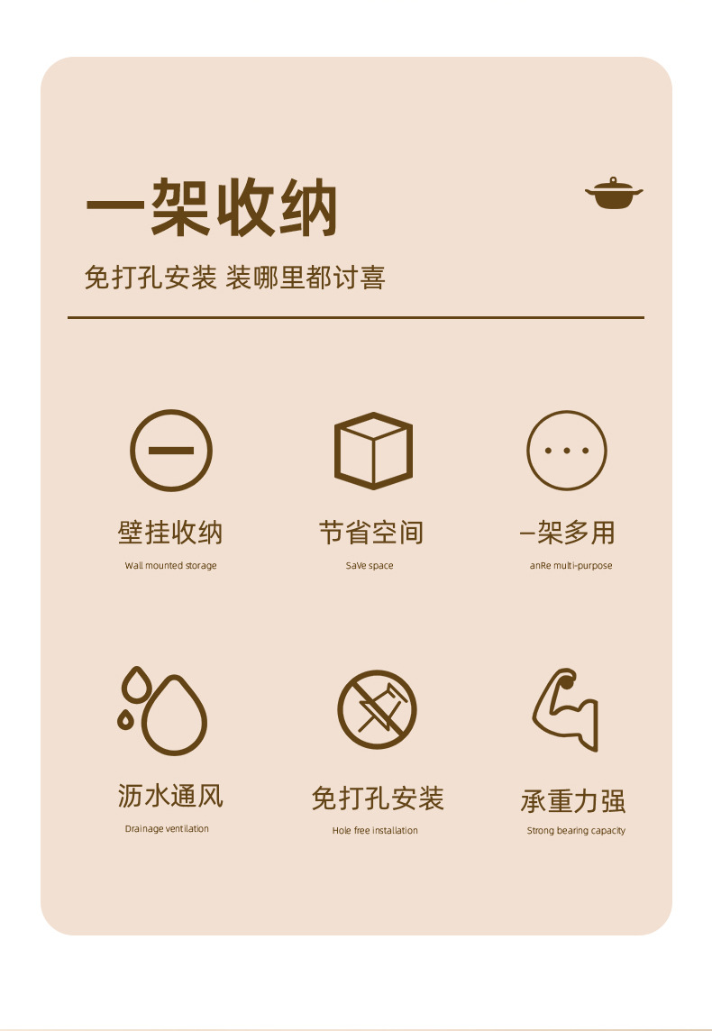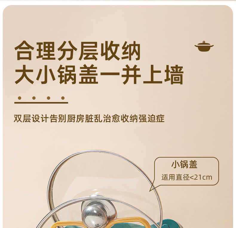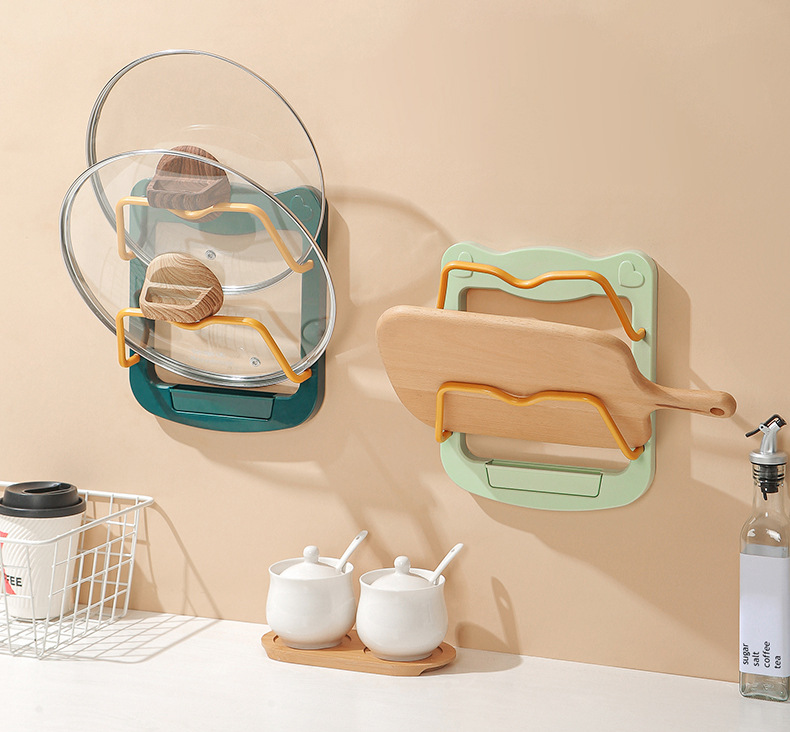 [대형 벽걸이 냄비 커버 선반] 펀치없는 주방 보관 랙 다기능 도마 도마 스토리지 냄비 삽 랙