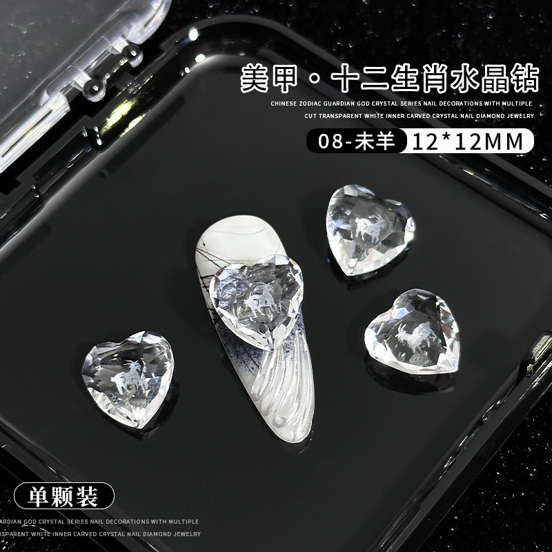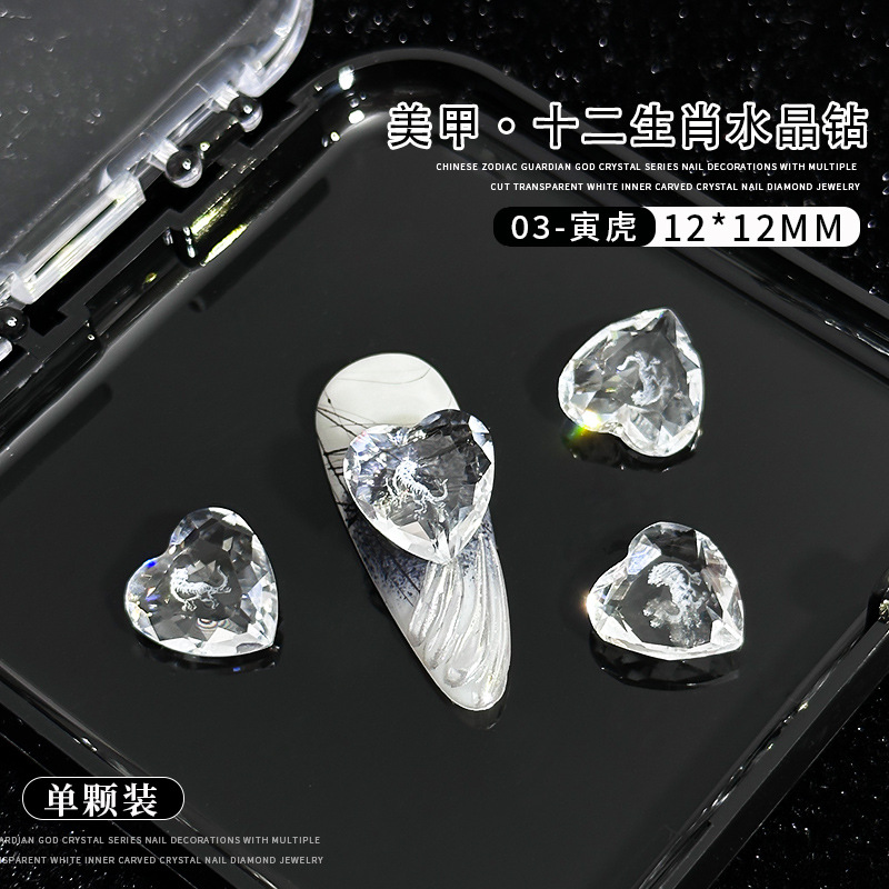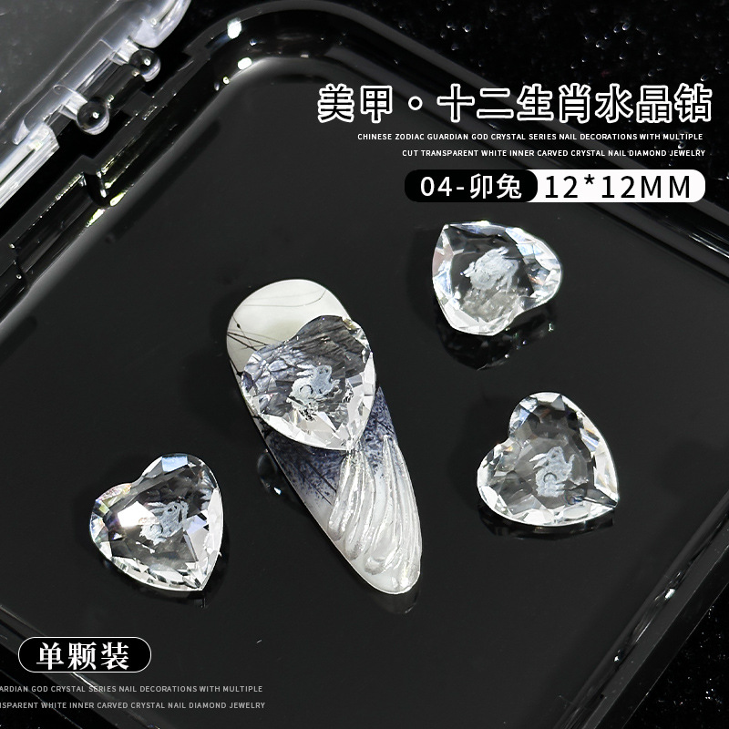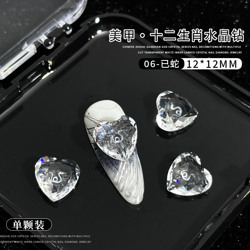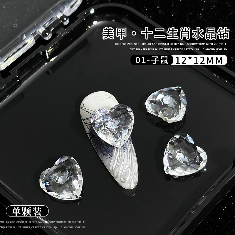 12 조디악 네일 쥬얼리 투명 사랑 크리스탈 내부 조각 쥐 Ox 타이거 토끼 용 뱀 말 양 원숭이 닭 개 돼지 네일 드릴