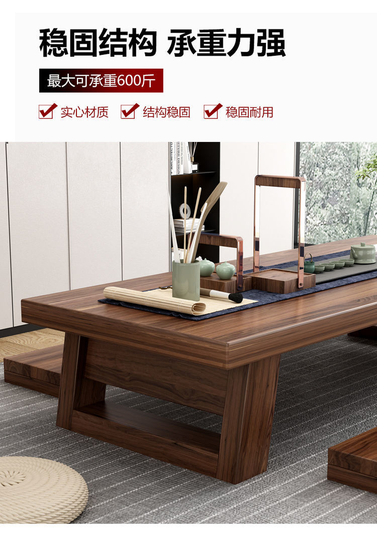 심플한 원목 일본식 차탁, 선(禪) 감성의 발코니 다다미 차탁, 긴 낮은 테이블, 간편 다기능 긴 테이블