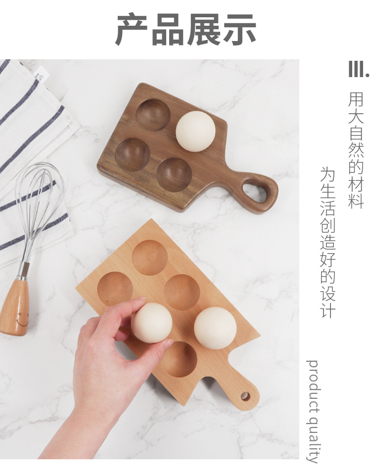 • 6 그리드 너도밤 나무 손잡이 계란 홀더