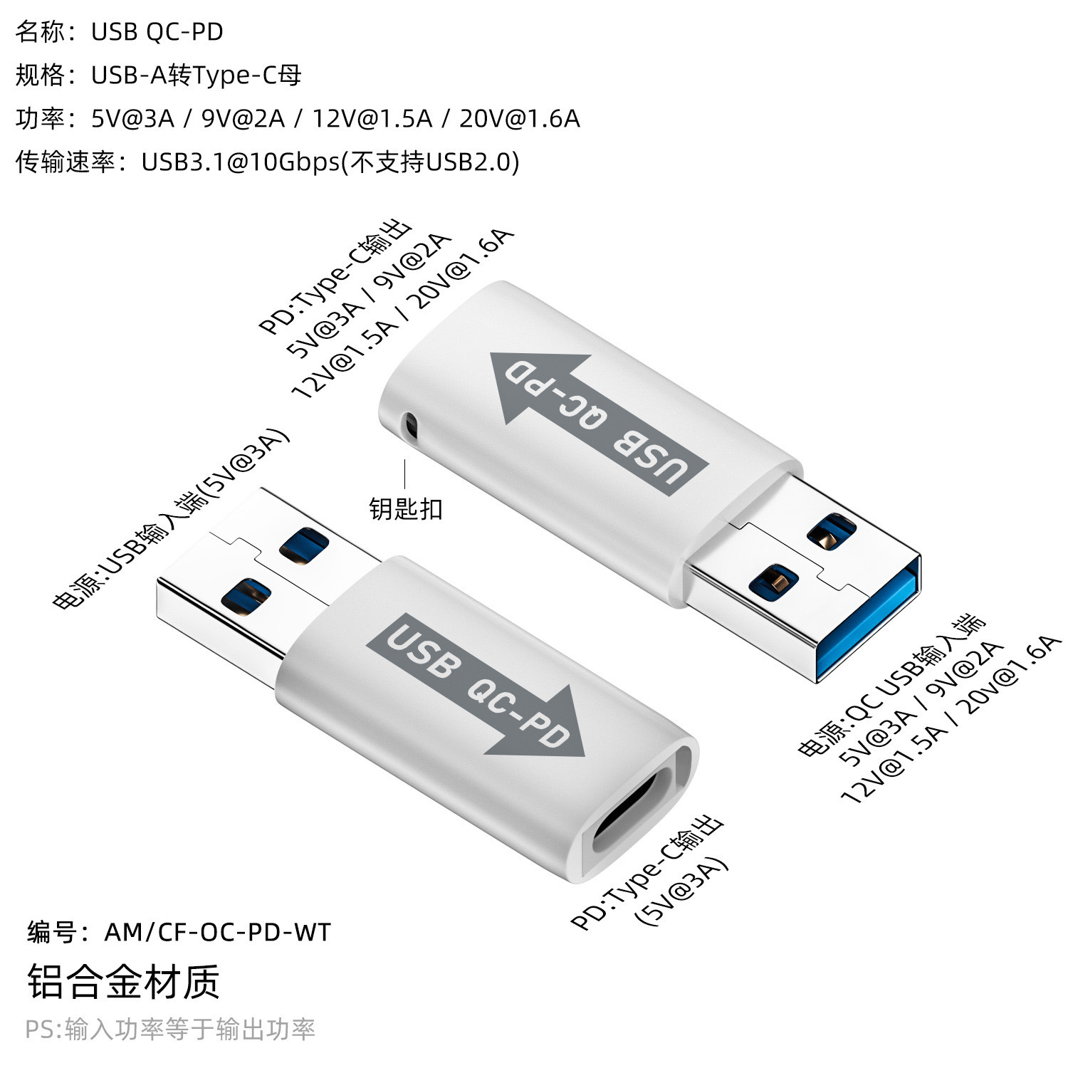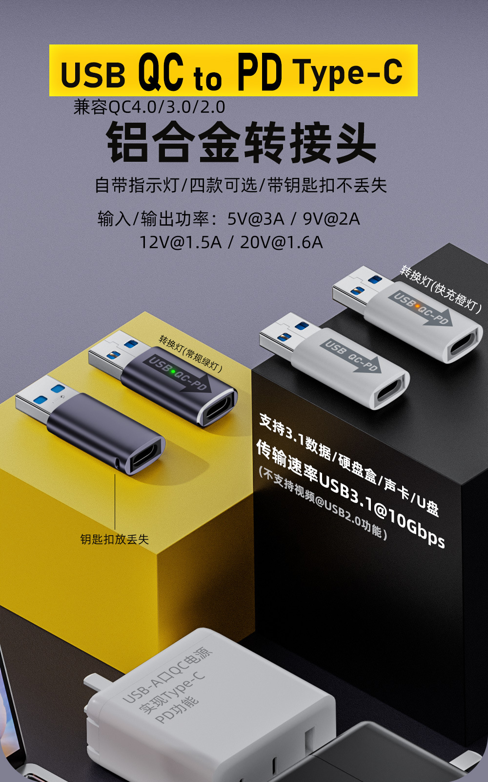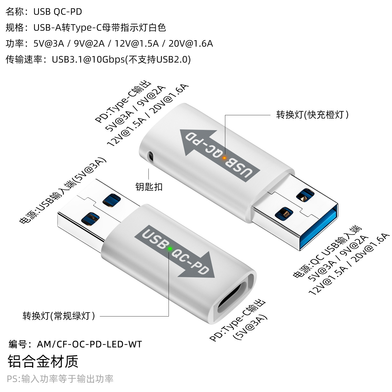 QC4.0/3.0/2.0 전원 PD 빠른 충전 유형-c 램프 USB가있는 여성-유형-c 어댑터 10Gb 전송