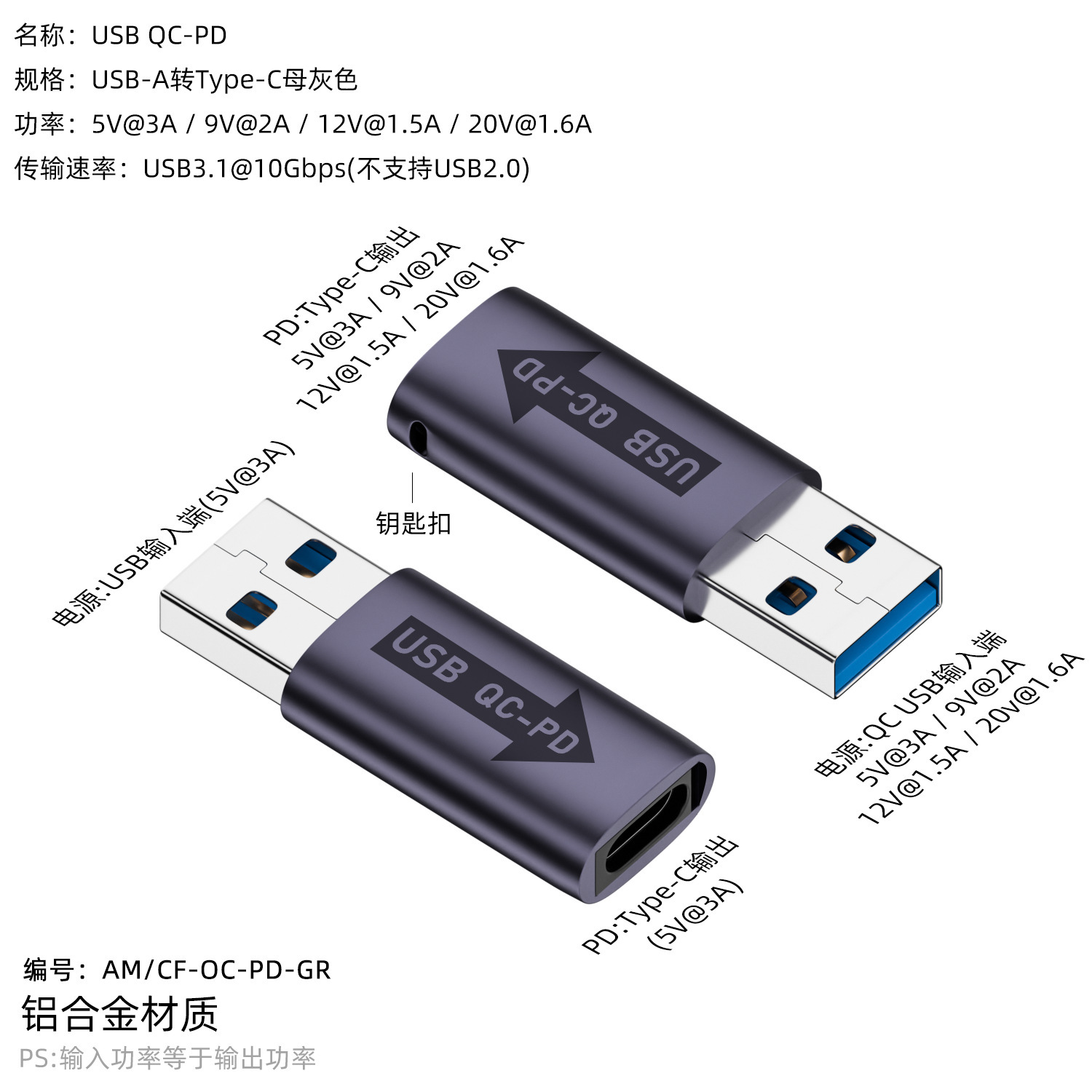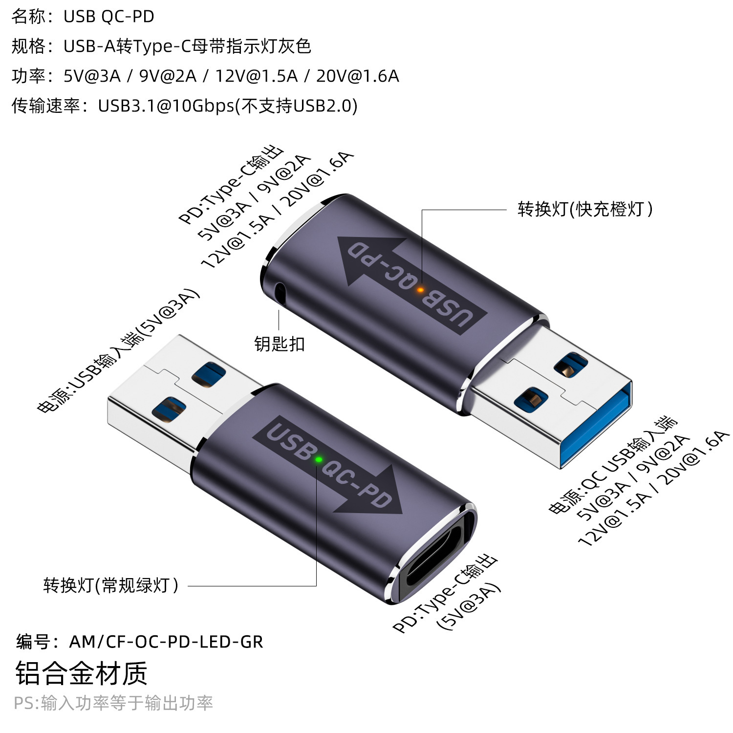 • 빛이있는 PD Type-c 어댑터 회색에 USB OC