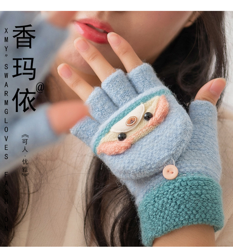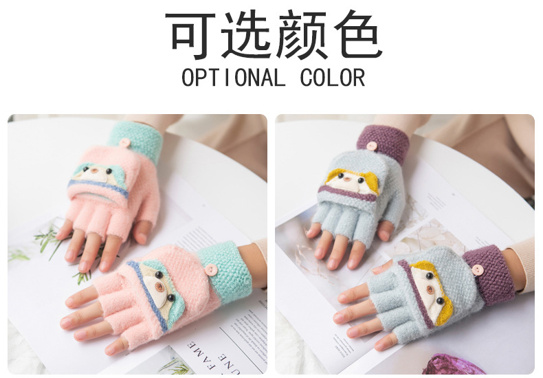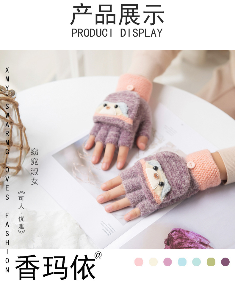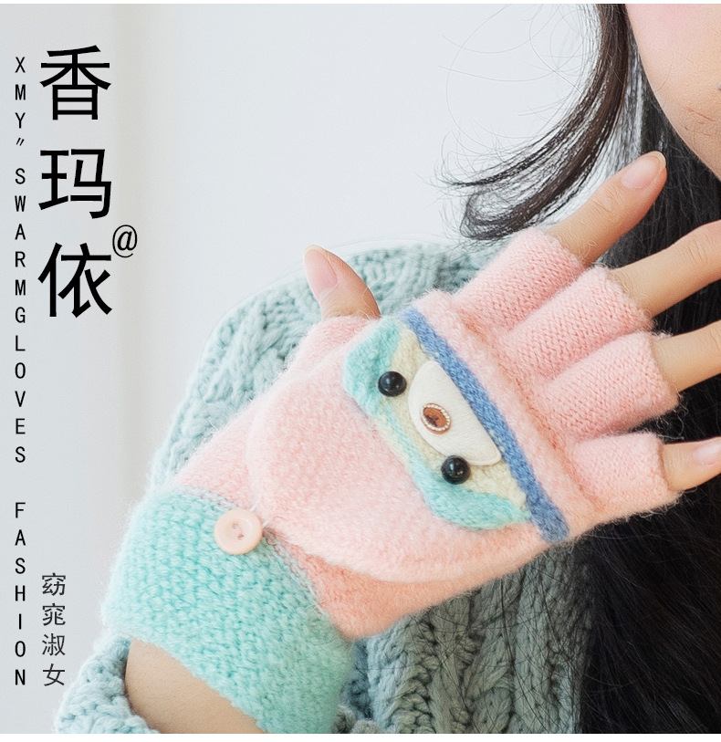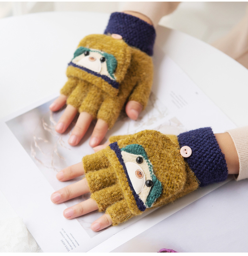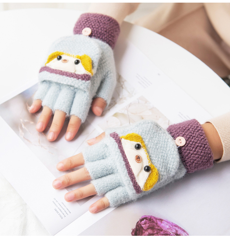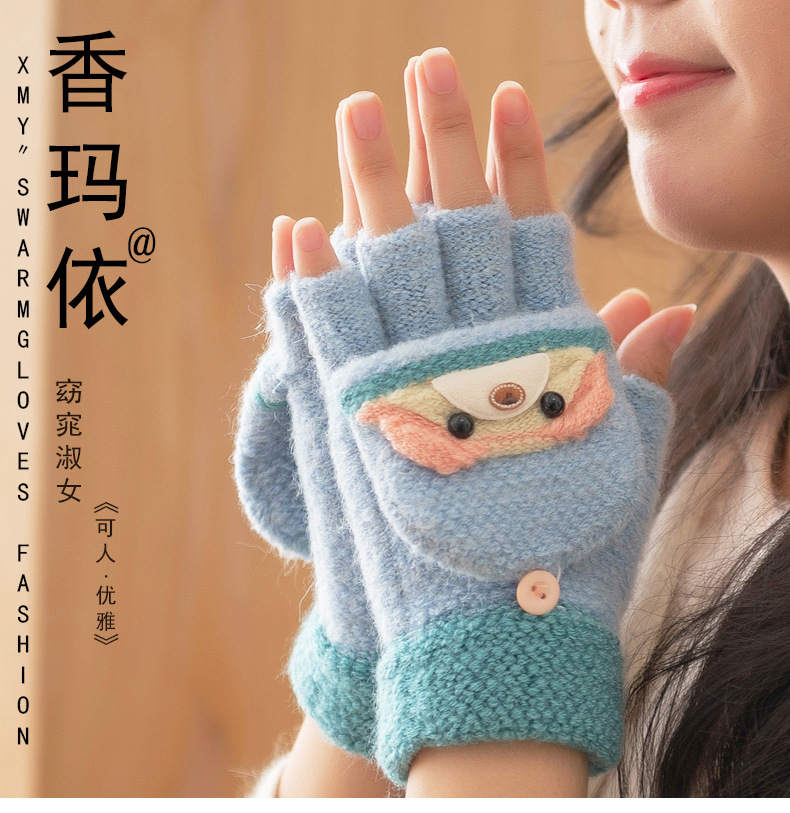 여성용 따뜻한 장갑, 반 손가락 플립업 디자인, 성인용 두꺼운 플리스 안감, 학생용 글쓰기 및 타이핑용, 손가락 없는 니트 모직 장갑스토어 가기