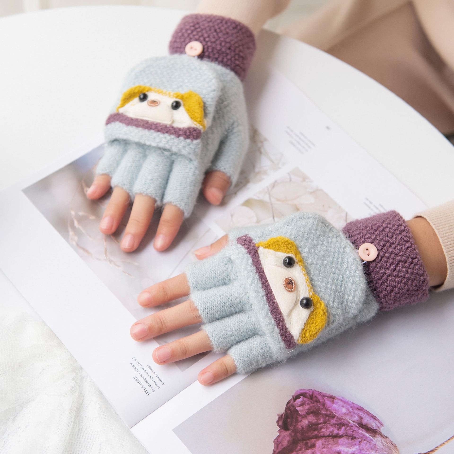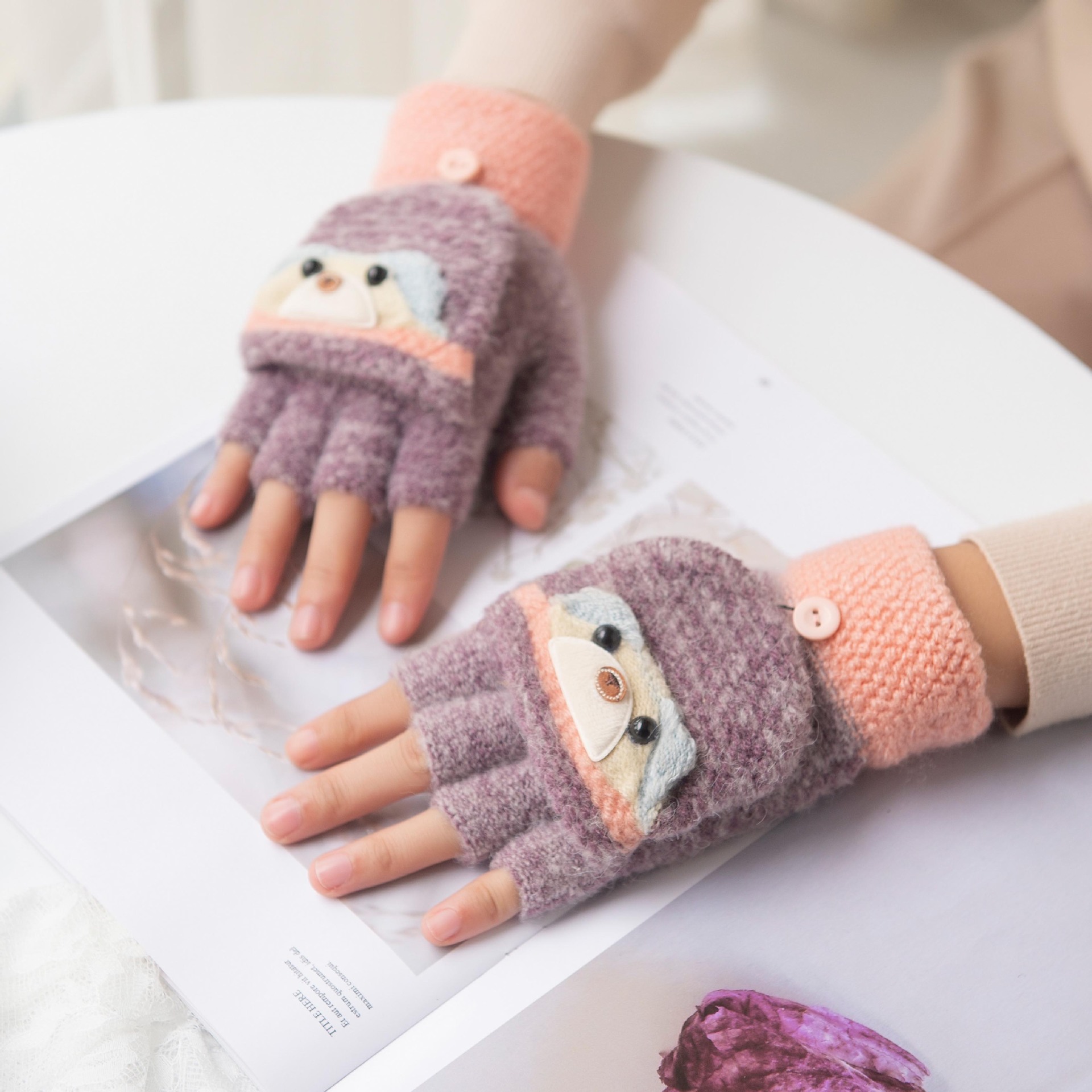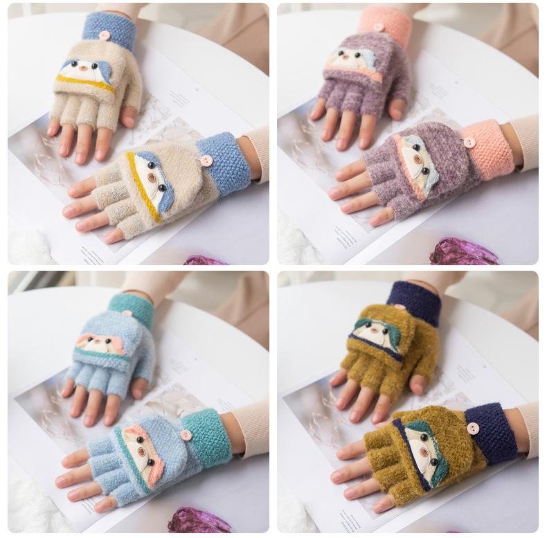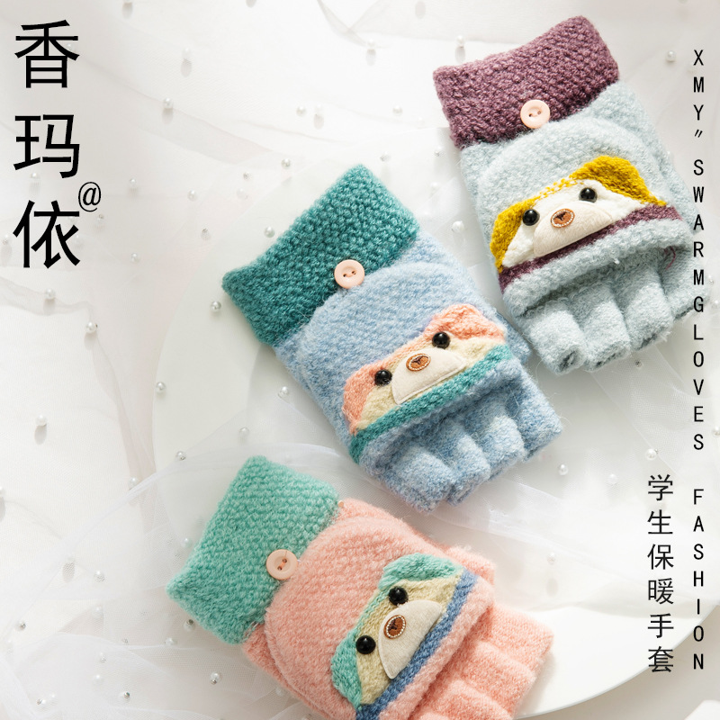 여성용 따뜻한 장갑, 반 손가락 플립업 디자인, 성인용 두꺼운 플리스 안감, 학생용 글쓰기 및 타이핑용, 손가락 없는 니트 모직 장갑스토어 가기