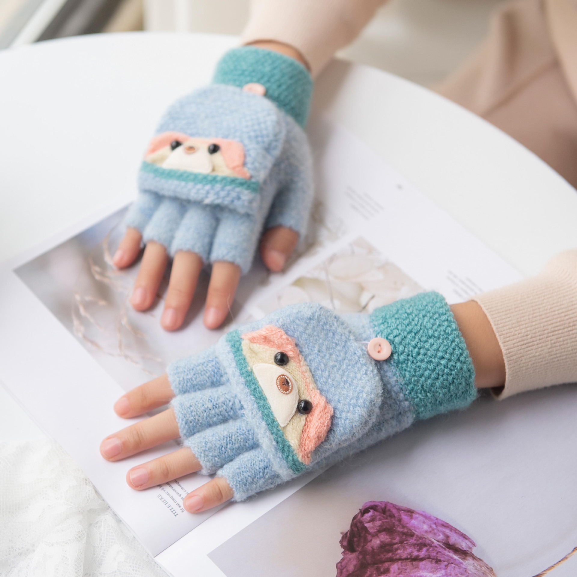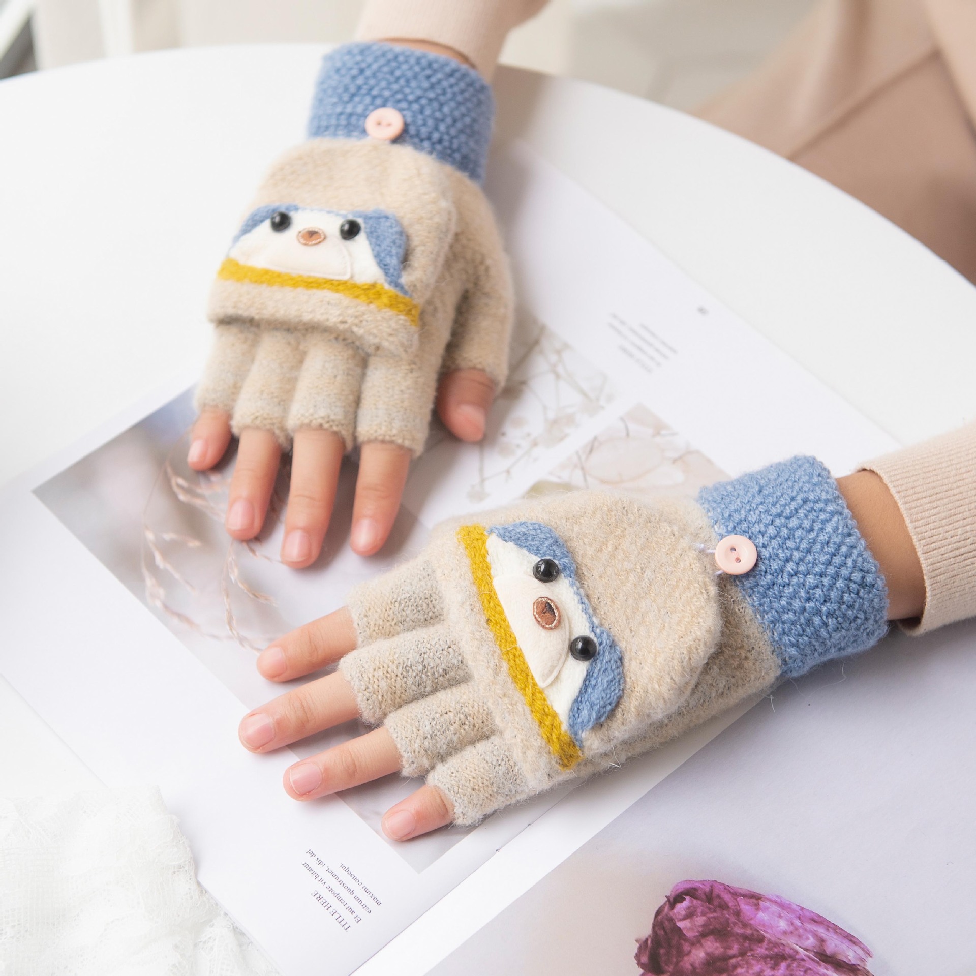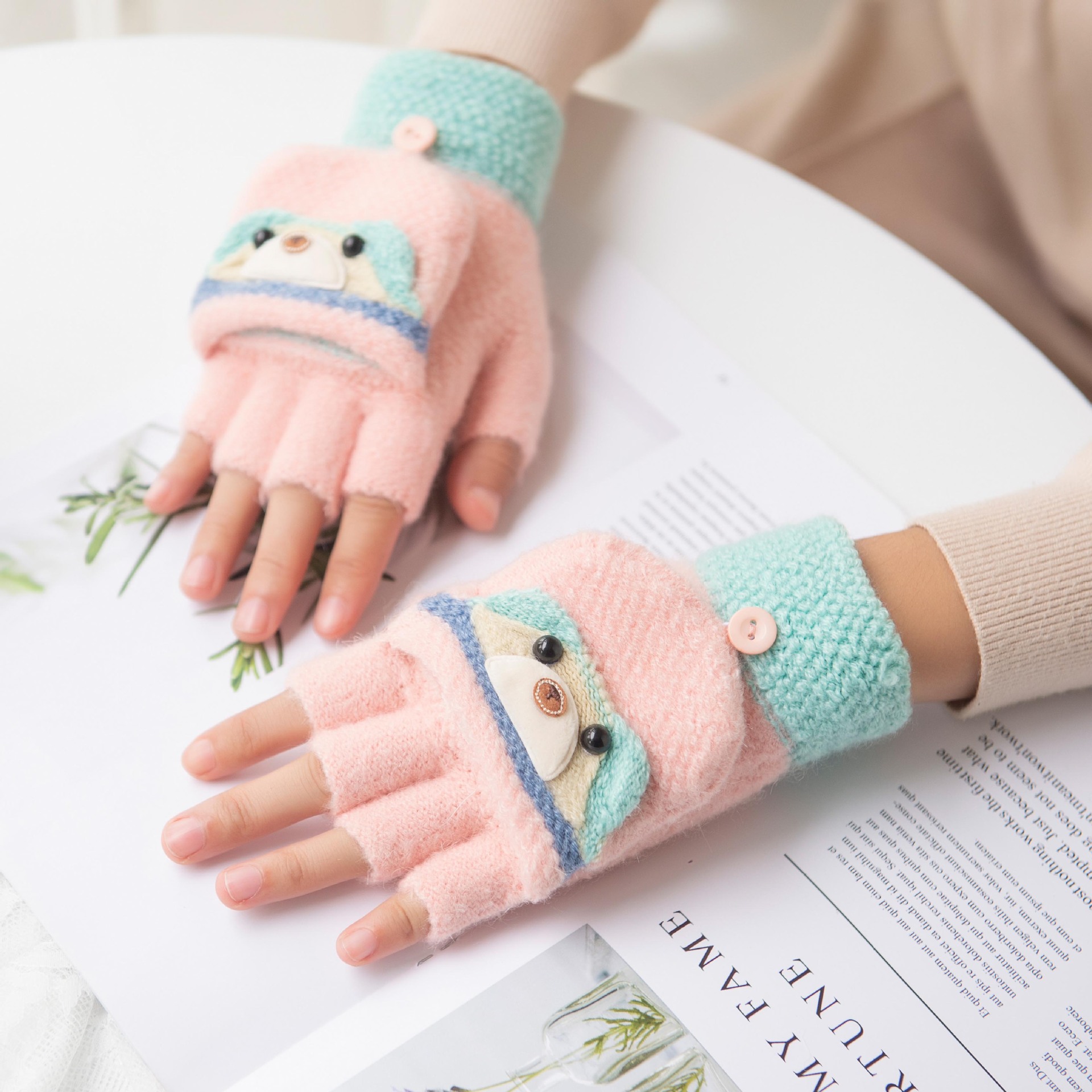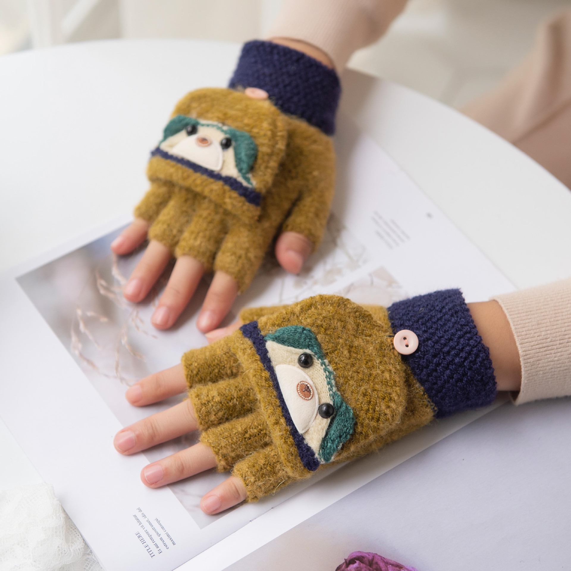 여성용 따뜻한 장갑, 반 손가락 플립업 디자인, 성인용 두꺼운 플리스 안감, 학생용 글쓰기 및 타이핑용, 손가락 없는 니트 모직 장갑스토어 가기