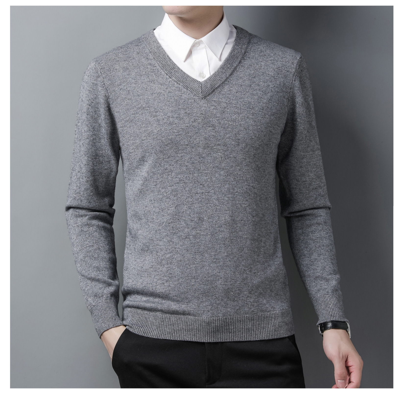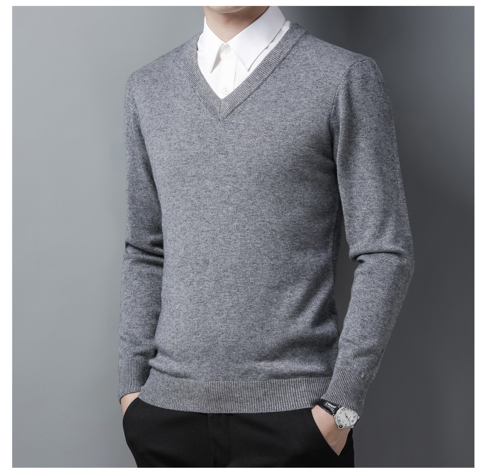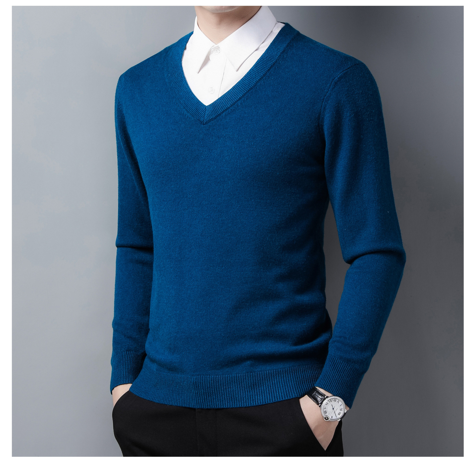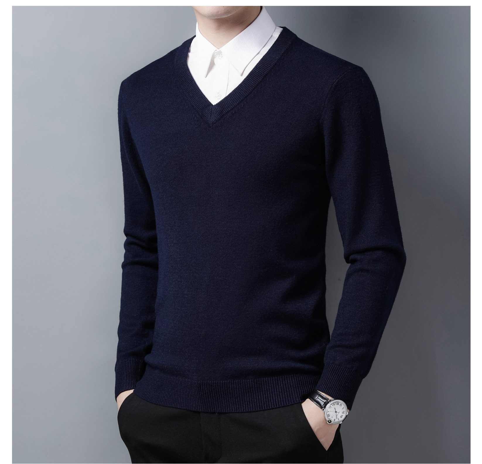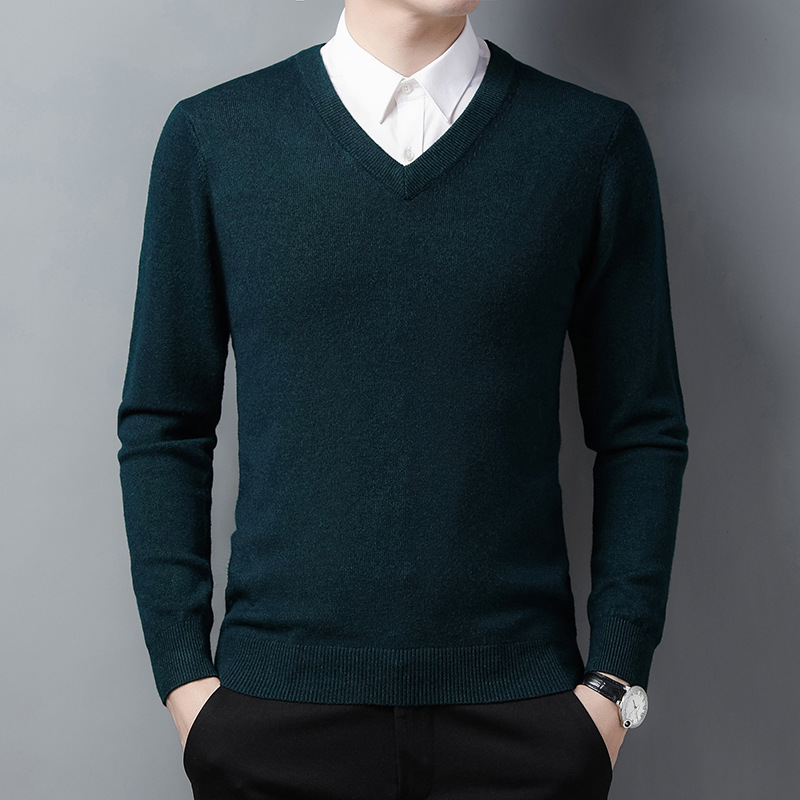 아빠를위한 중년 남성 V 넥 두꺼운 스웨터 따뜻한 니트 치킨 칼라 스웨터 가을과 겨울 슬림 바닥 셔츠