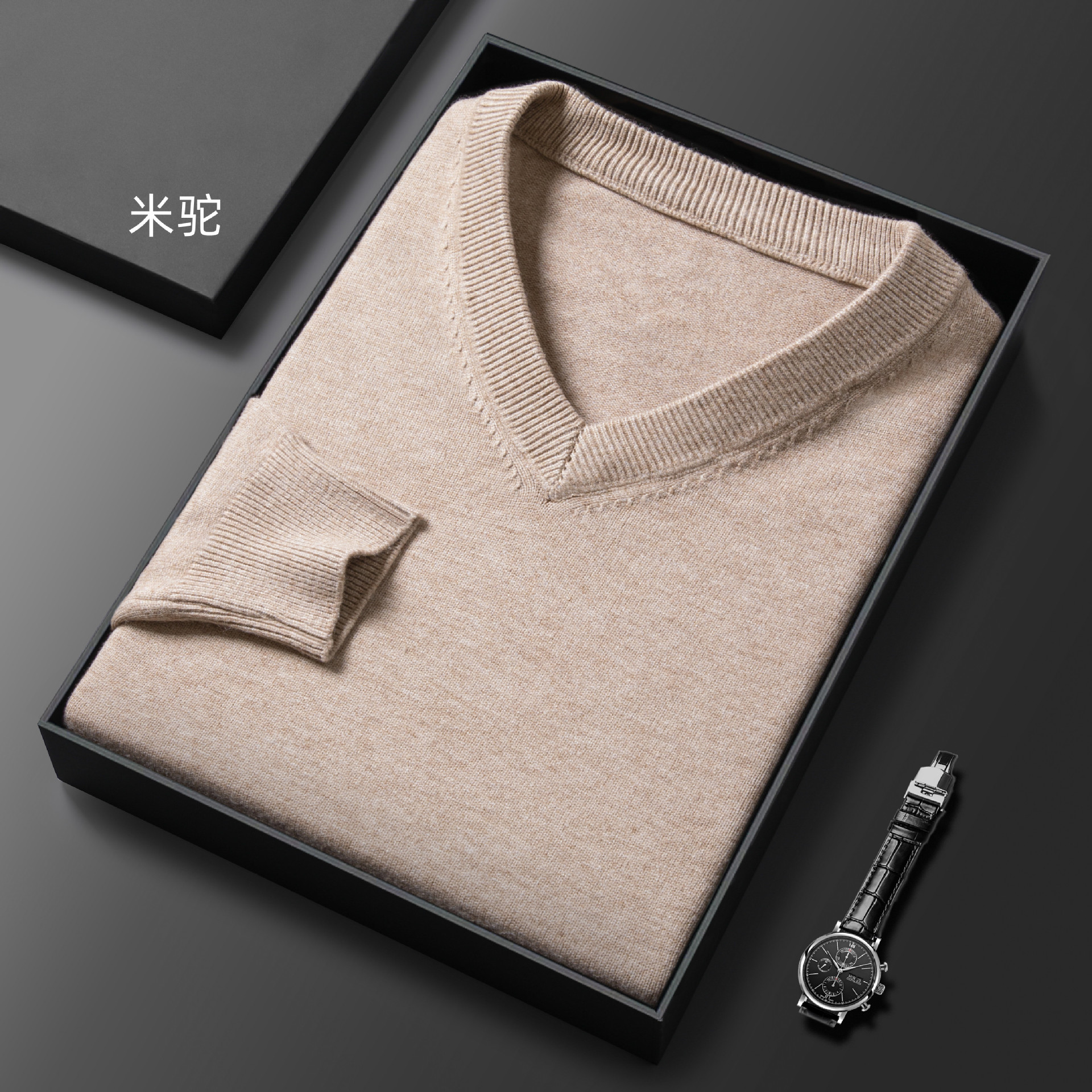 아빠를위한 중년 남성 V 넥 두꺼운 스웨터 따뜻한 니트 치킨 칼라 스웨터 가을과 겨울 슬림 바닥 셔츠스토어 가기