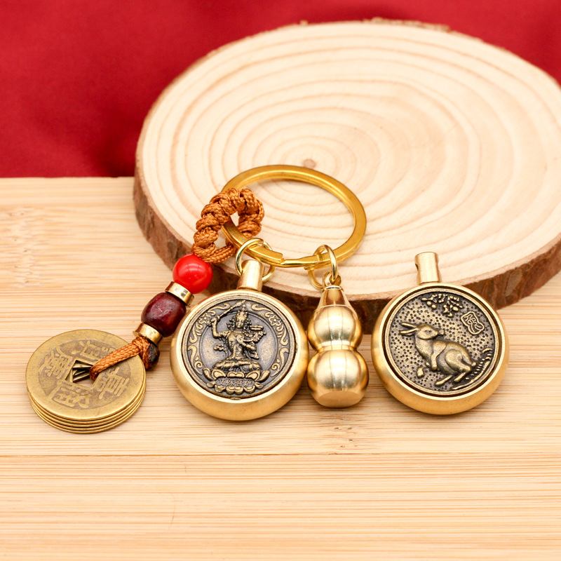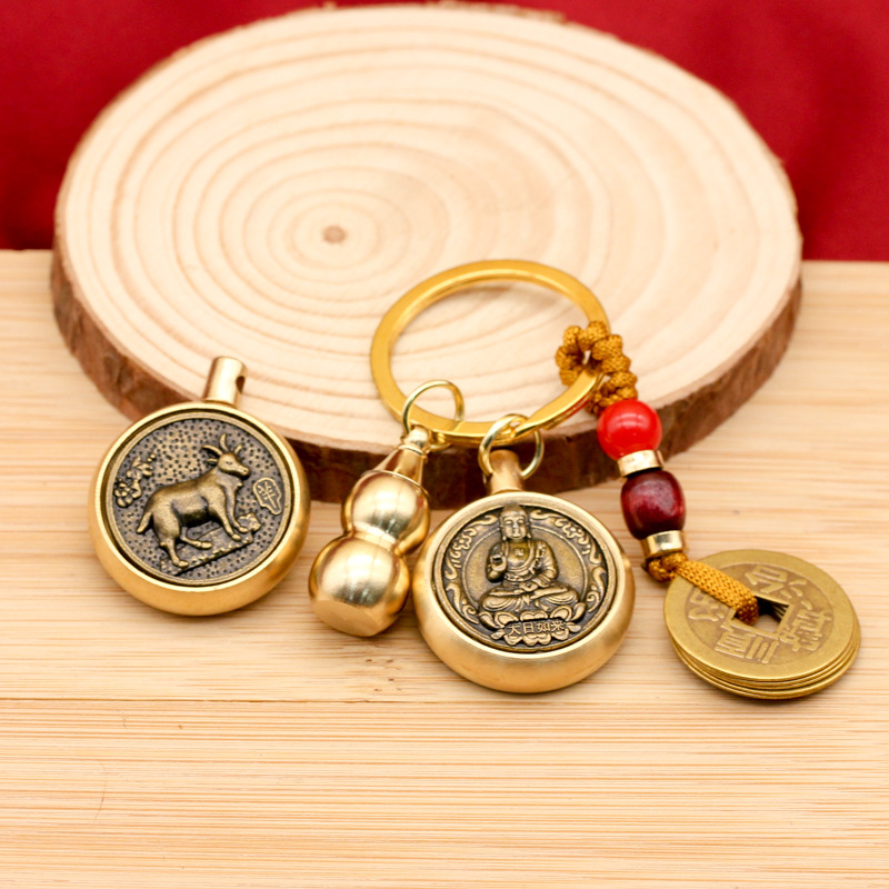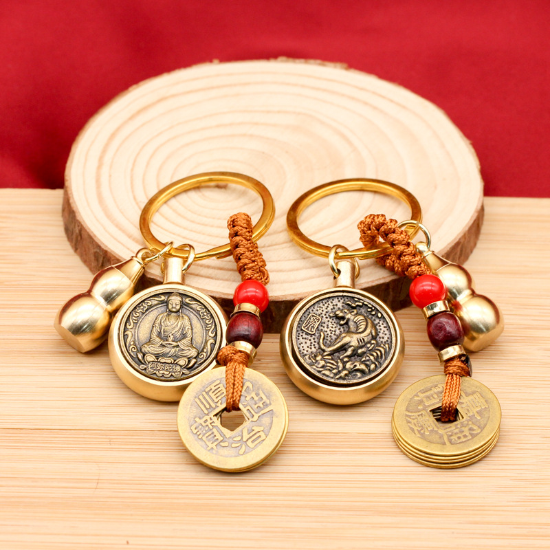 조디악 벤 밍포 구리 여덟 후원자 신 양면 돈 다섯 황제 돈 자동차 키 체인 펜던트 창조적 인 선물