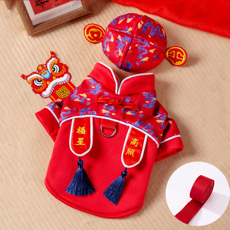 개 새해 복고풍 모자 새해 두 피트 얇은 벨벳 작은 개 축제 새해 견인 스웨터 애완 동물 옷