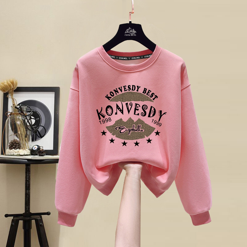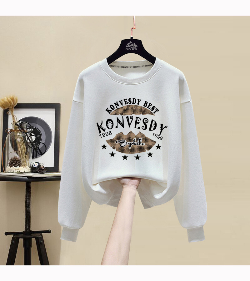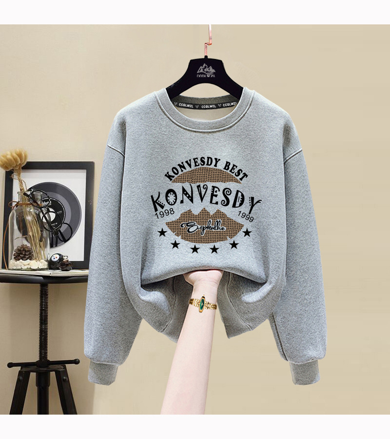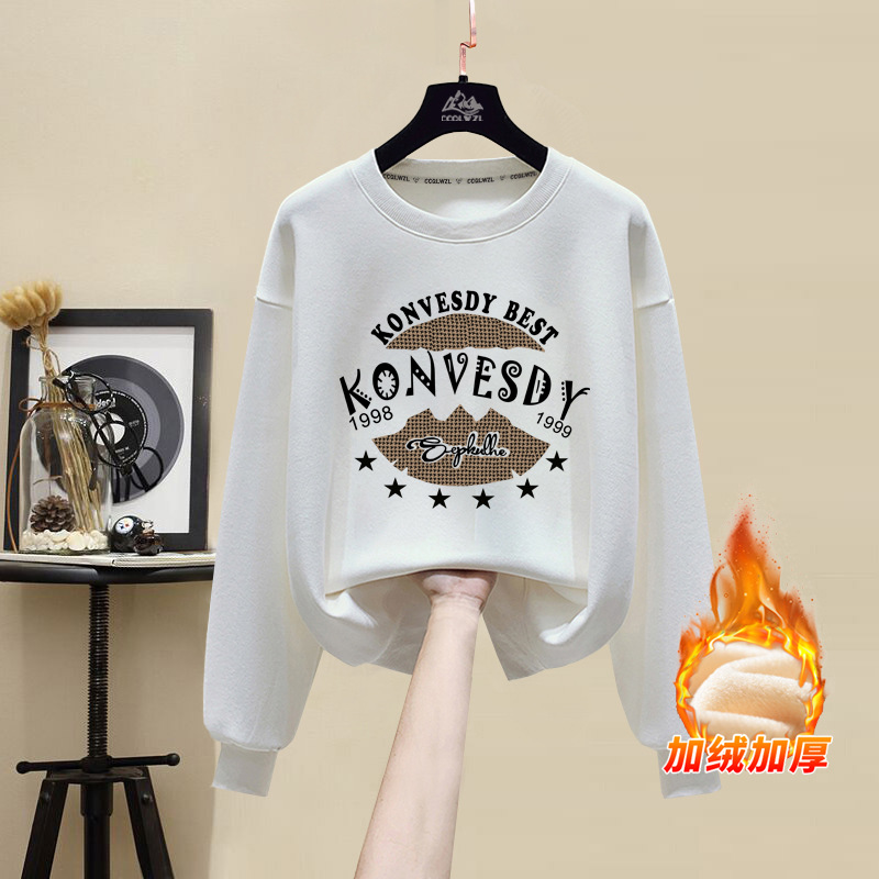 2023 면 스웨트 셔츠 여성의 봄과 가을 둥근 목 느슨한 슬림 겨울 기모 두껍게 긴 소매 학생 탑 Ins