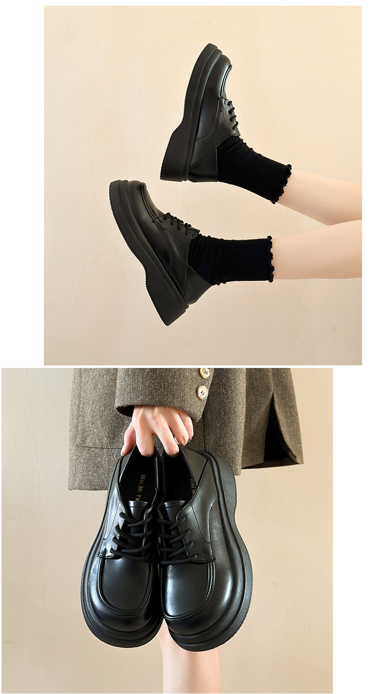 작은 가죽 신발 여성의 봄 2024 새로운 영국 스타일의 밝은 검은 플랫폼 로퍼 슬립 온 가죽 신발 여성용 싱글 신발스토어 가기