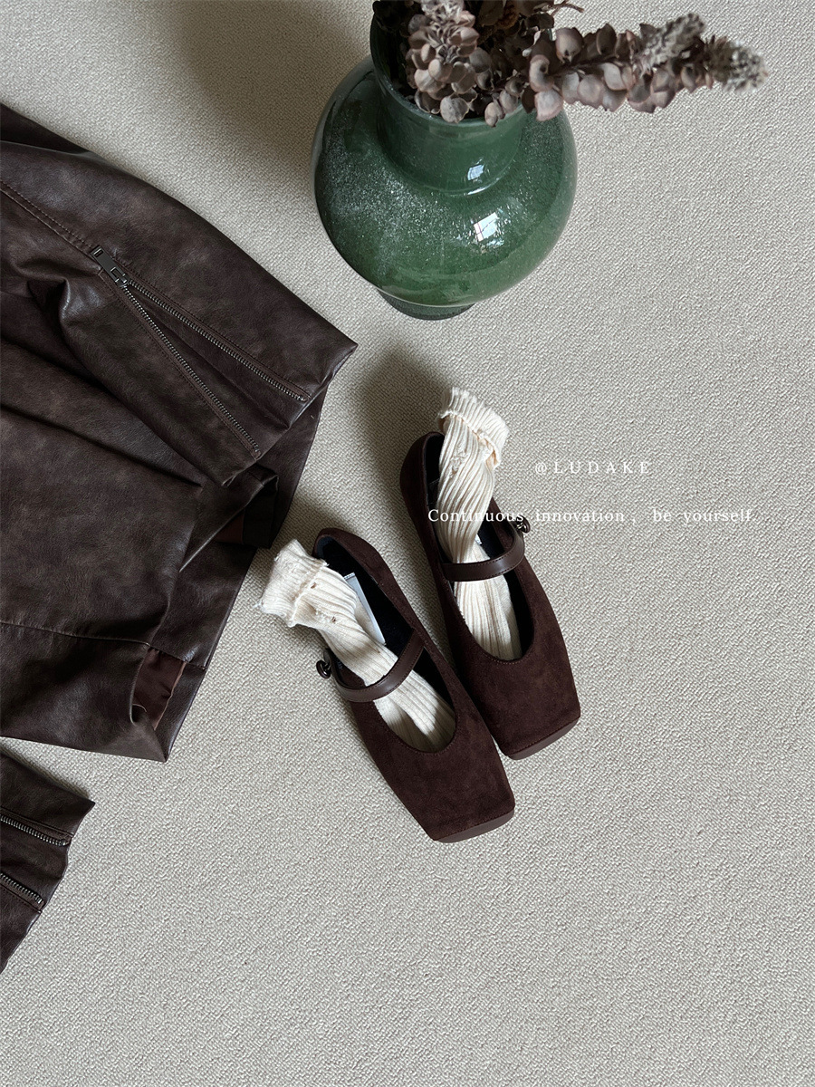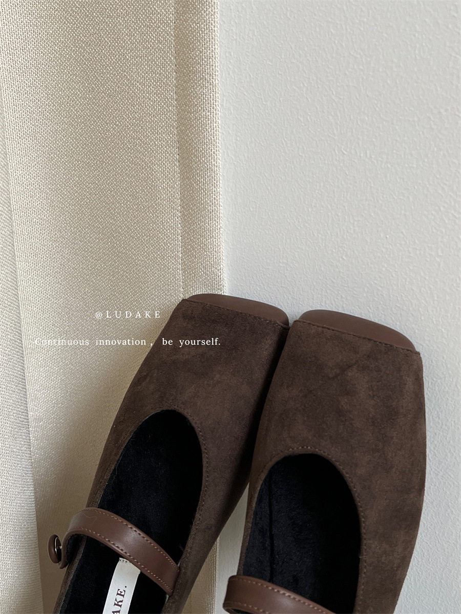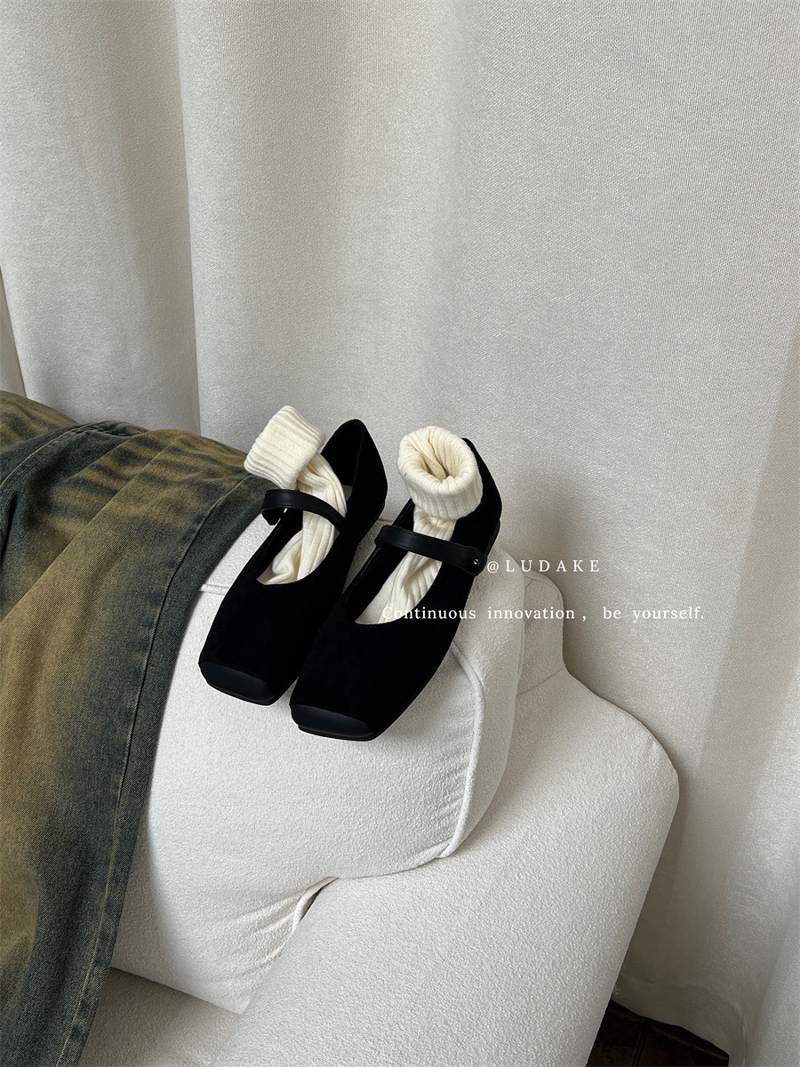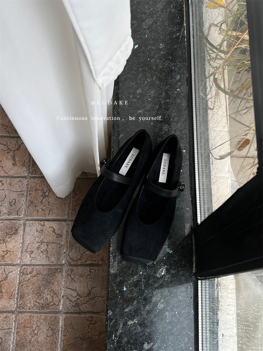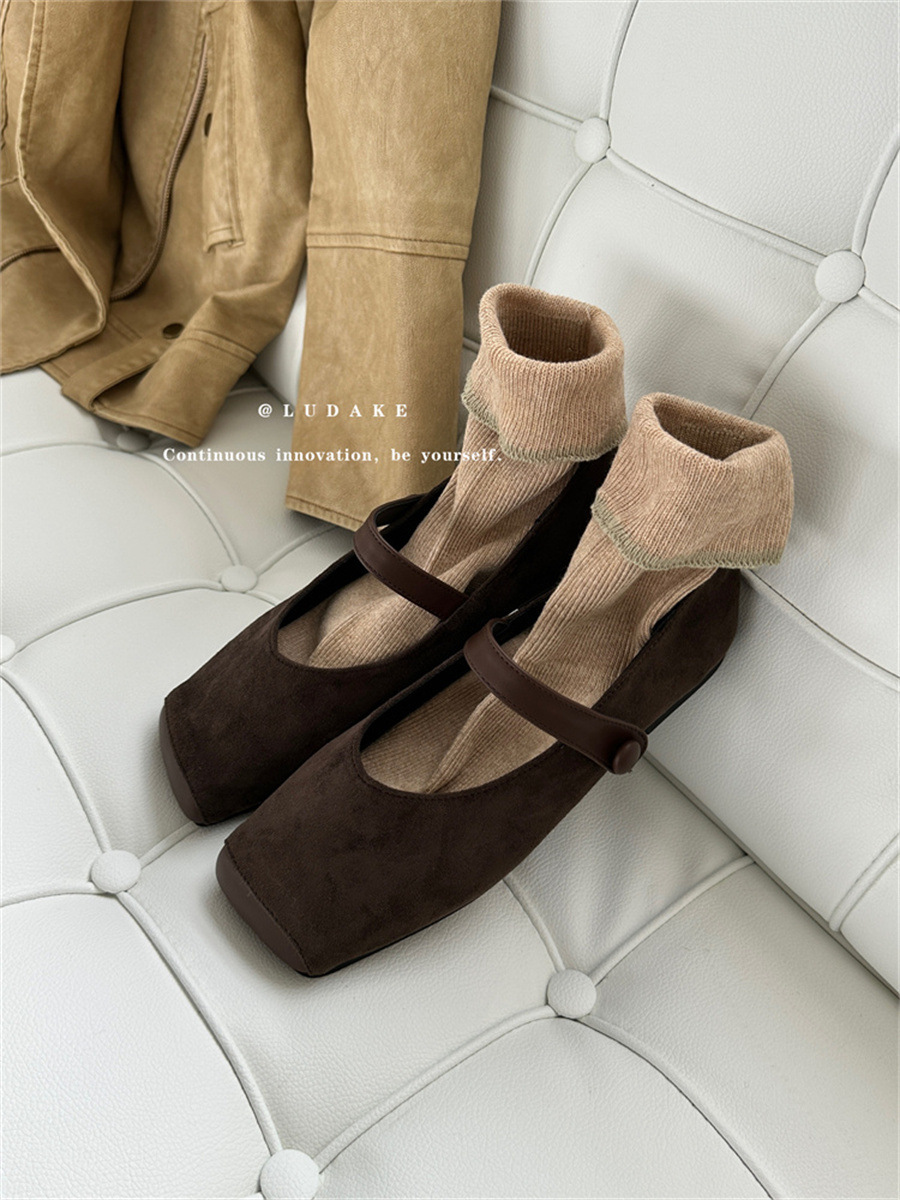 스퀘어 토 메리 제인 신발 2023 가을과 겨울 새로운 스웨이드 원 스트랩 레트로 원피스 기모 싱글 레이어 신발스토어 가기