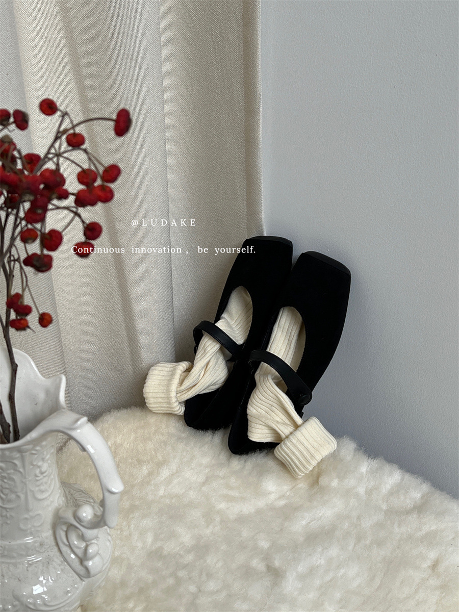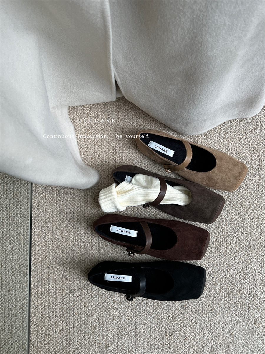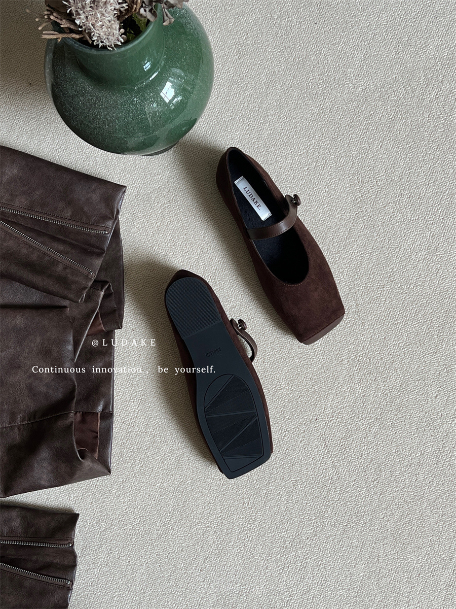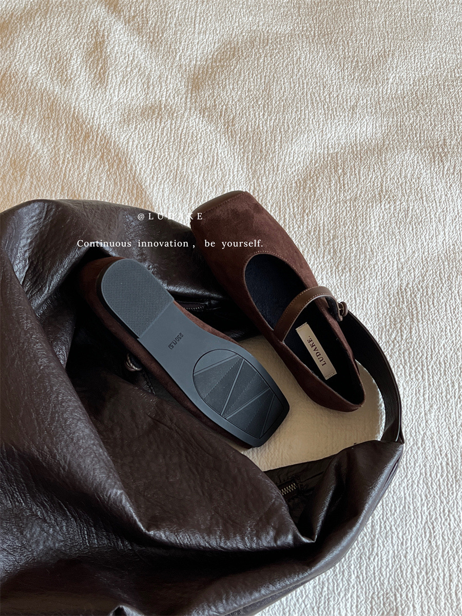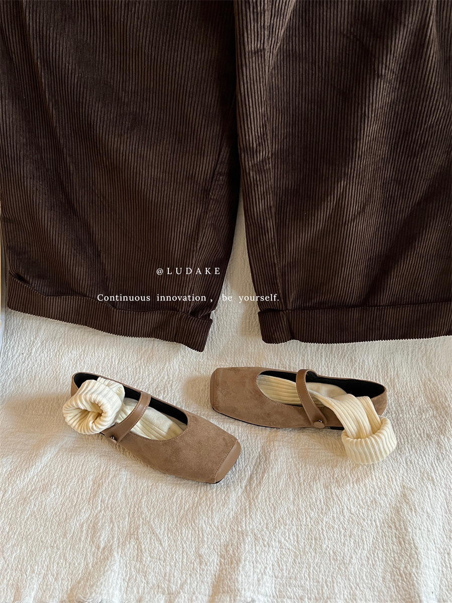 스퀘어 토 메리 제인 신발 2023 가을과 겨울 새로운 스웨이드 원 스트랩 레트로 원피스 기모 싱글 레이어 신발스토어 가기