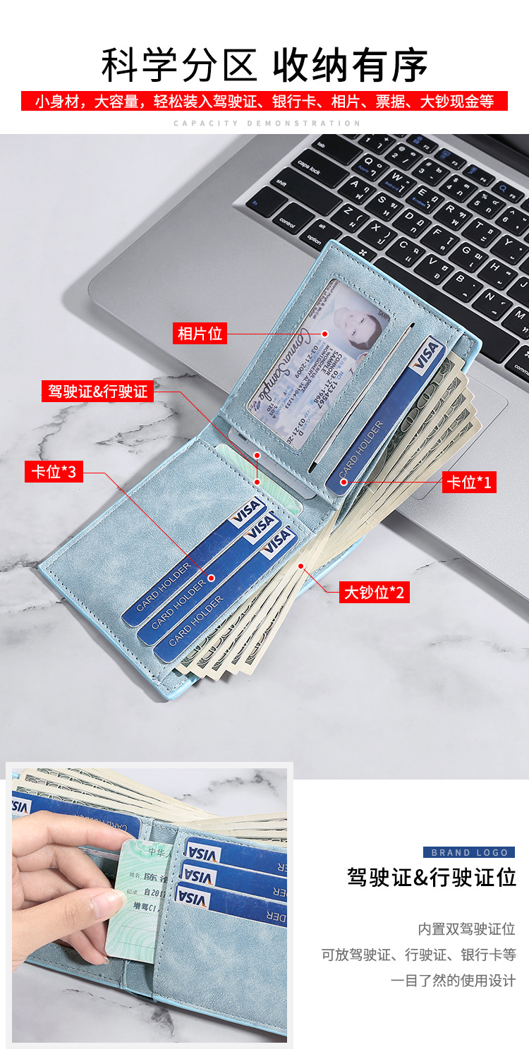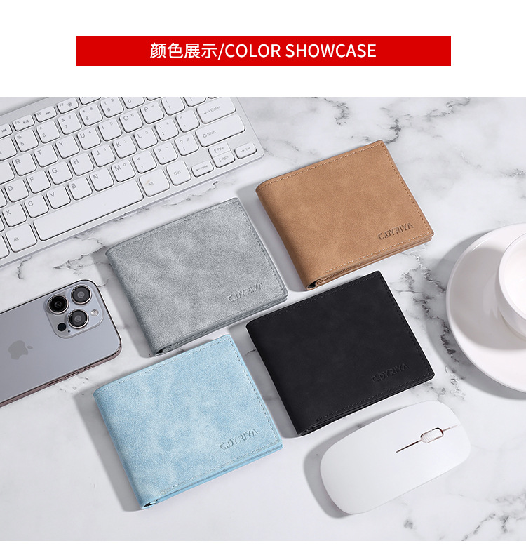 지갑 남자의 짧은 지갑 패션 간단한 수평 프로스트 소프트 지갑 카드 홀더 남자의 얇은 학생 실버 가방 도매스토어 가기