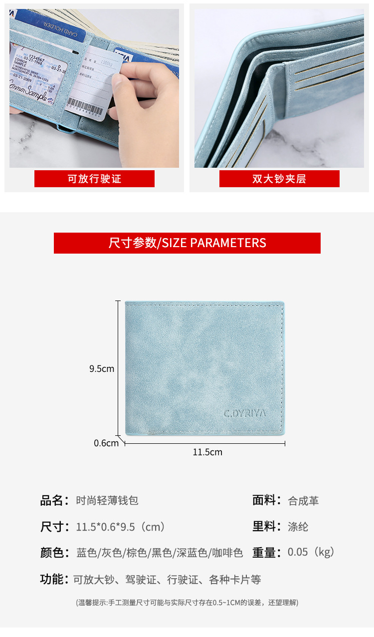 지갑 남자의 짧은 지갑 패션 간단한 수평 프로스트 소프트 지갑 카드 홀더 남자의 얇은 학생 실버 가방 도매