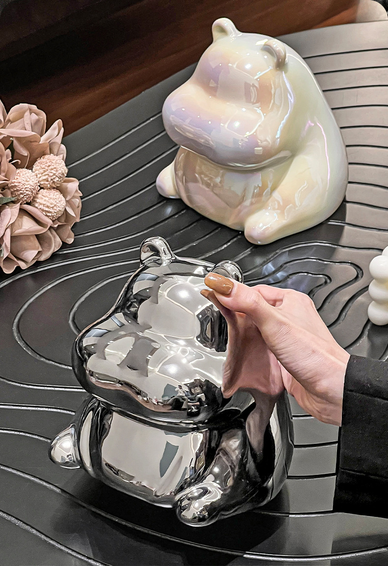 높은 모양의 세라믹 작은 하마 티슈 박스 거실 하이 엔드 라이트 럭셔리 커피 테이블 장식 냅킨 장식 티슈 박스