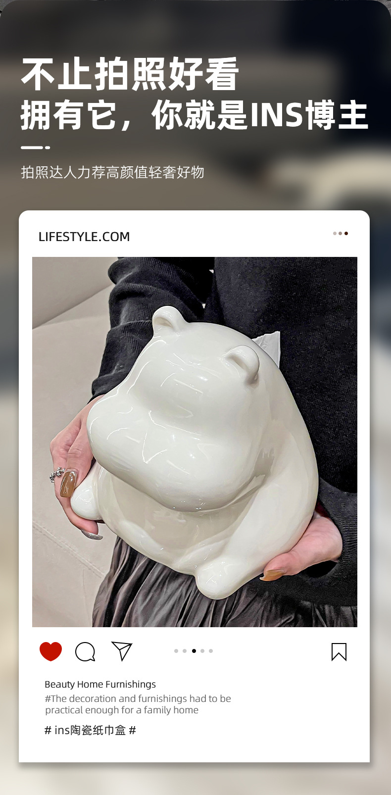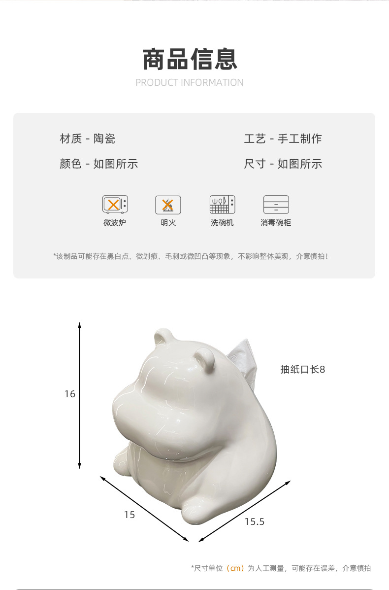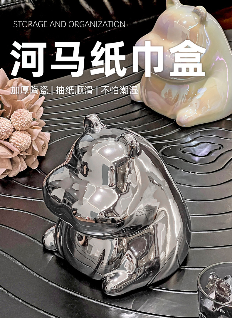 높은 모양의 세라믹 작은 하마 티슈 박스 거실 하이 엔드 라이트 럭셔리 커피 테이블 장식 냅킨 장식 티슈 박스스토어 가기