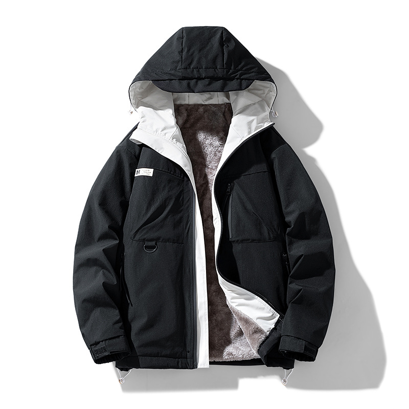 마운틴 재킷 남자의 겨울 후드 트렌디 한 올 매치 잘 생긴 플러스 사이즈 방풍 작업복 재킷 기모 두꺼운 코트스토어 가기